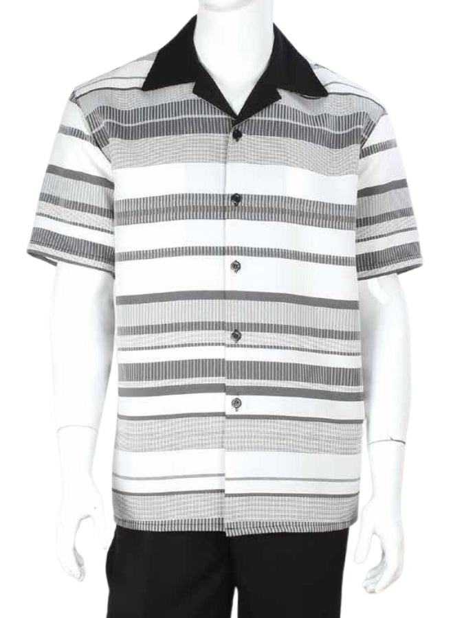 Apollo King Royal Diamond Black and White Striped Classic Fit Walking Suit