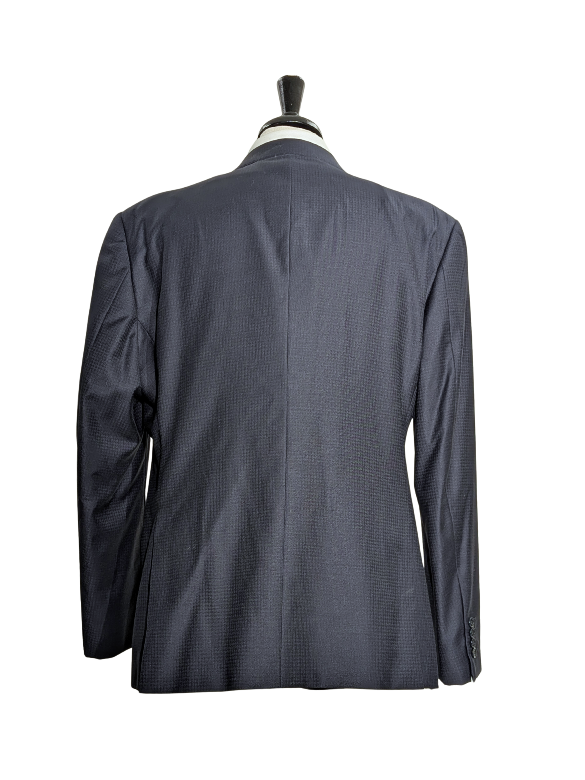 Armani Collezioni G-line Navy Blue Check Notch Lapel Wool Slim Fit 2-Button Suit - 48R