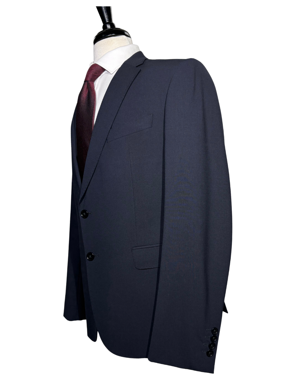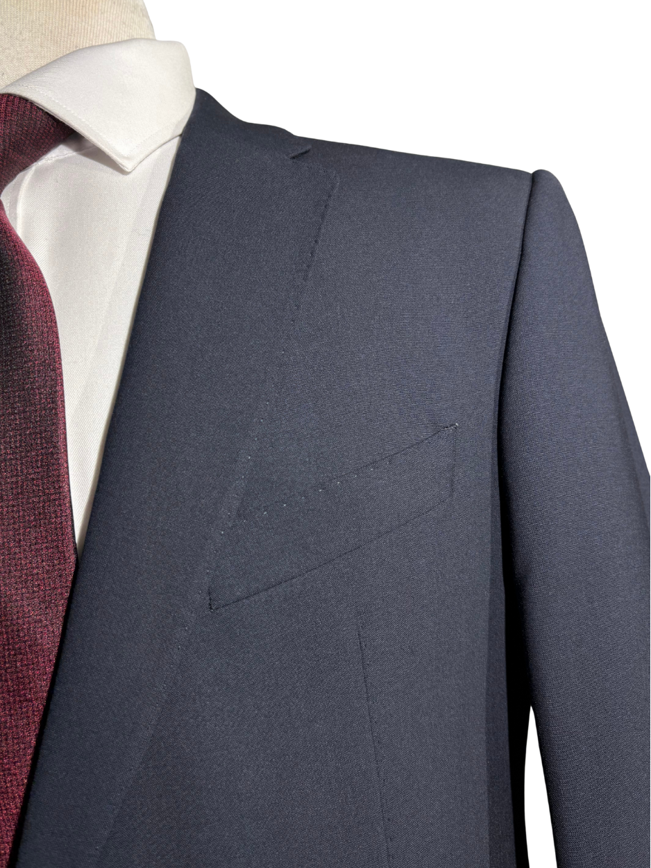 Armani Collezioni Solid Dark Blue M-Line Notch Lapel Modern Fit 2 Button Wool Suit - 44R