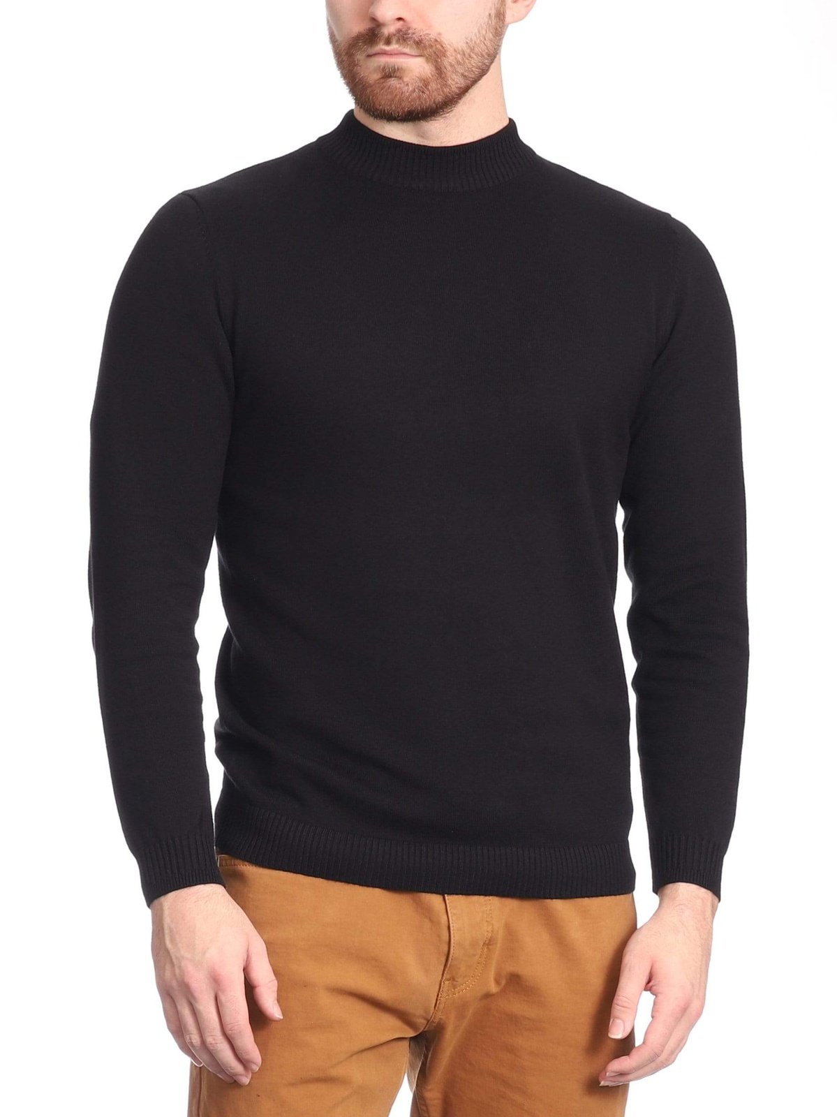 Arthur Black Men's Solid Black Pullover Cotton Blend Mock Neck Sweater Shirt