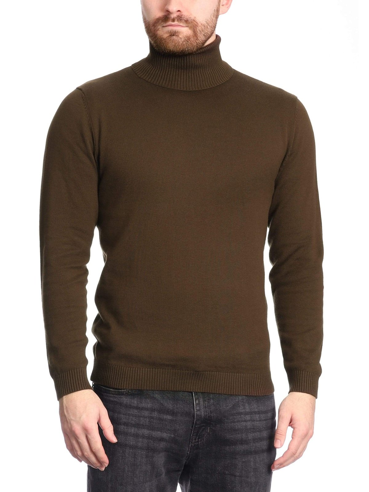Arthur Black Men's Solid Brown Pullover Cotton Blend Turtleneck Sweater Shirt