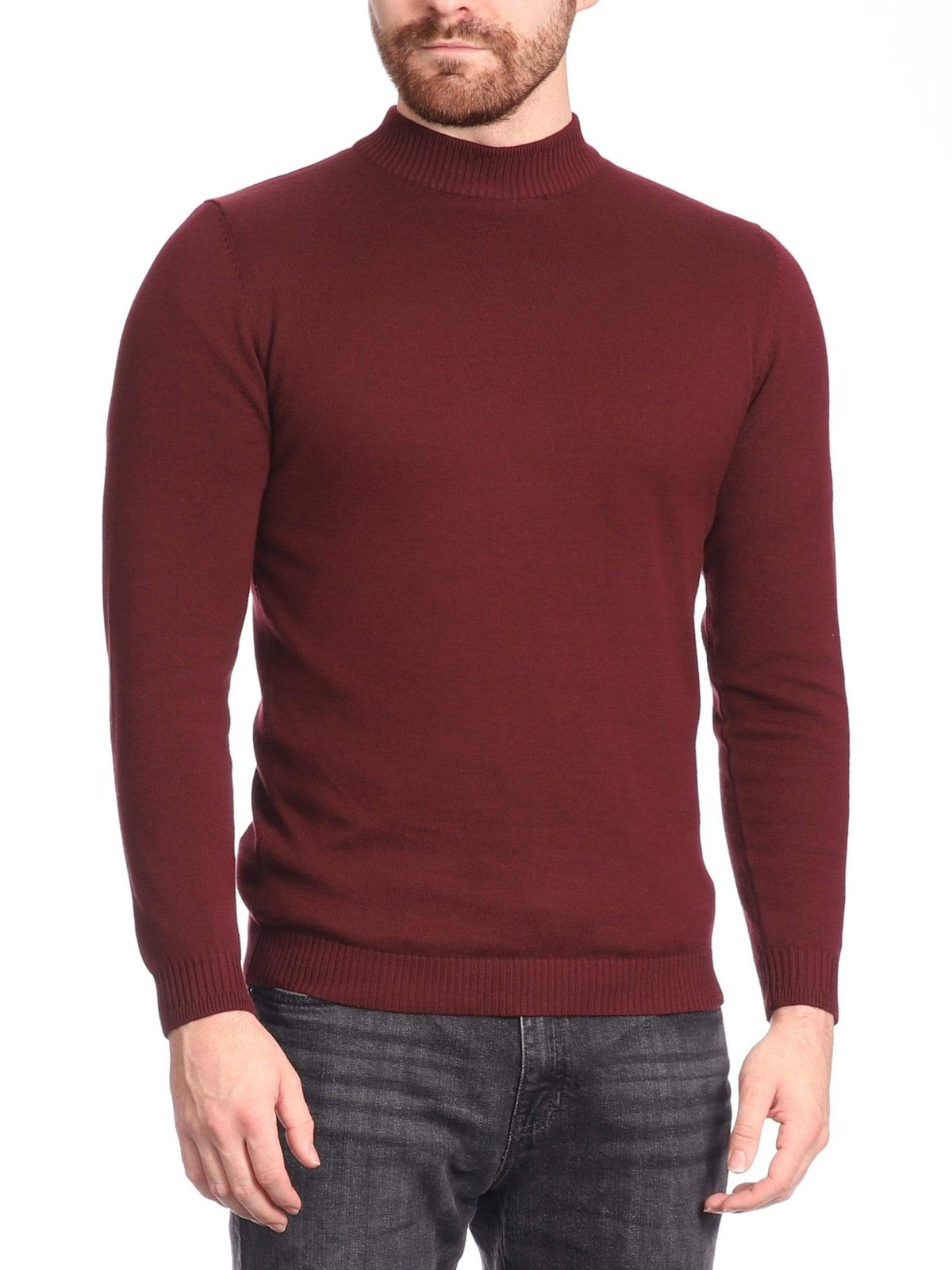 Arthur Black Men's Solid Burgundy Pullover Cotton Blend Mock Neck Sweater Shirt