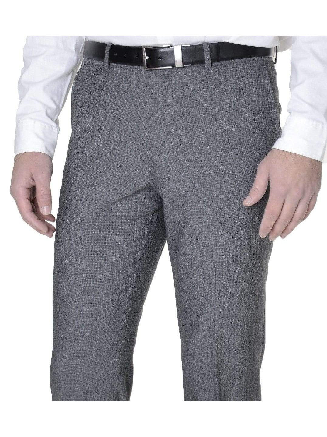 Bar III Mens Slim Fit Gray Textured Flat Front Wool Blend Dress Pants