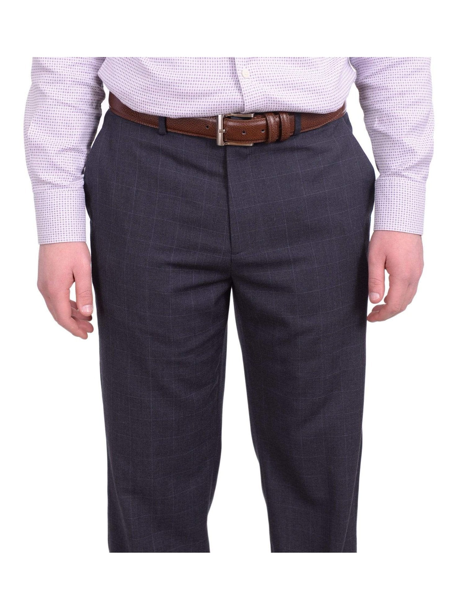 Calvin Klein Straight Fit Blue With Gray Windowpane Overcheck Dress Pants