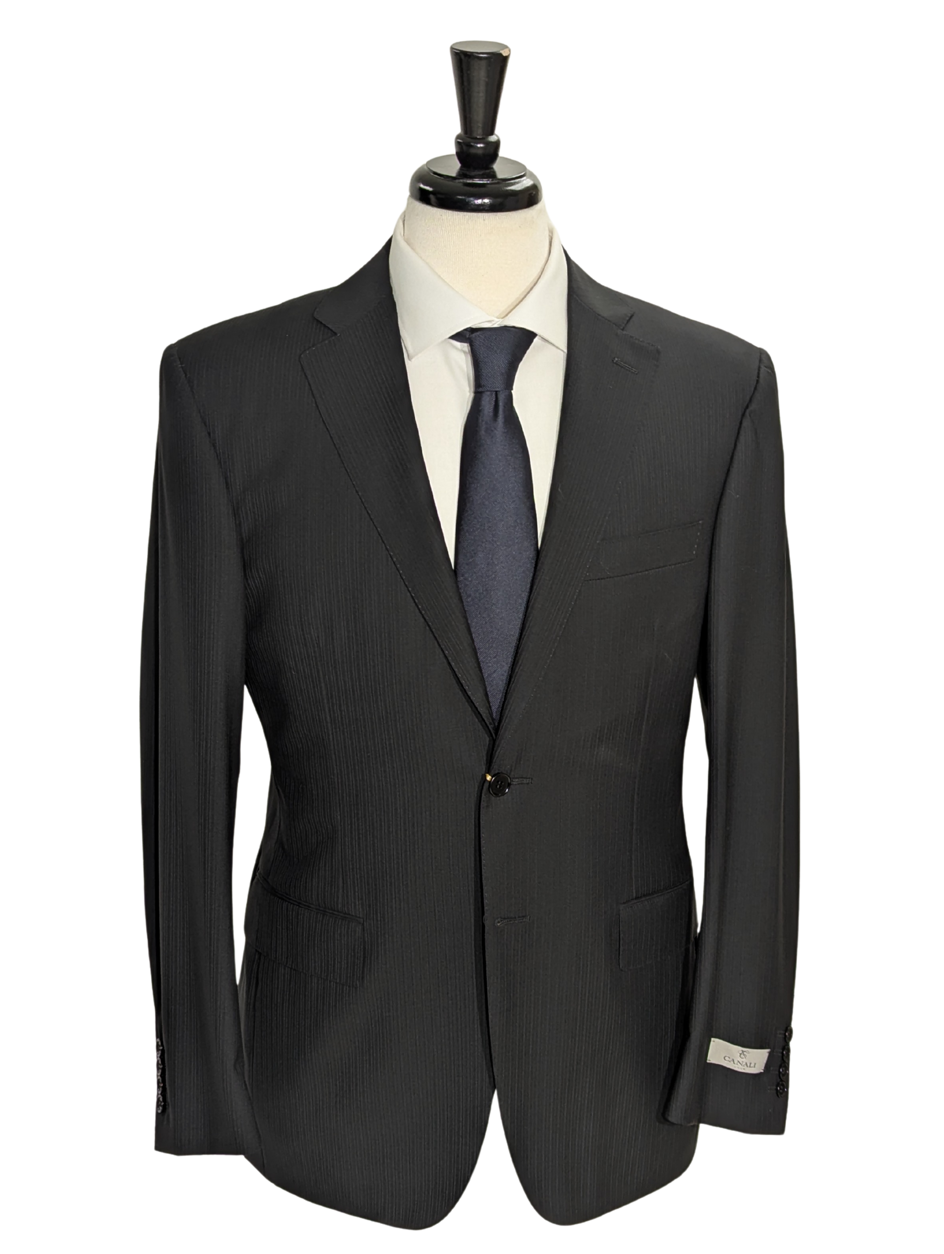 Canali Black Tonal Striped 100% Wool Suit 38R