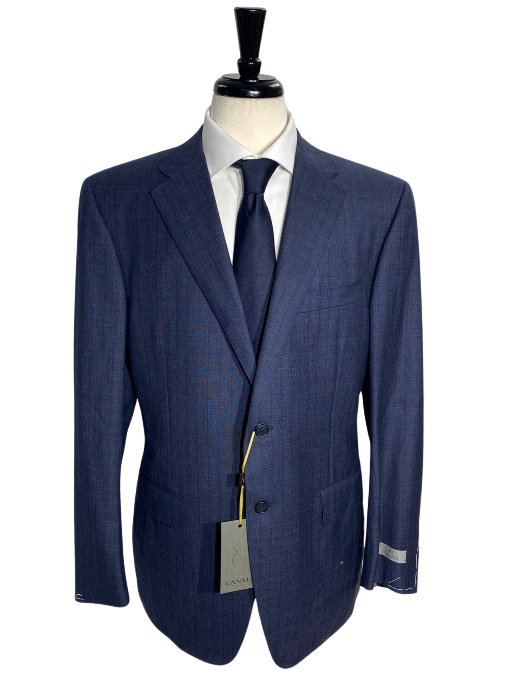 Canali Blue Pinstriped Notch Lapel 100% Wool Classic Fit 2 Button Suit 44L