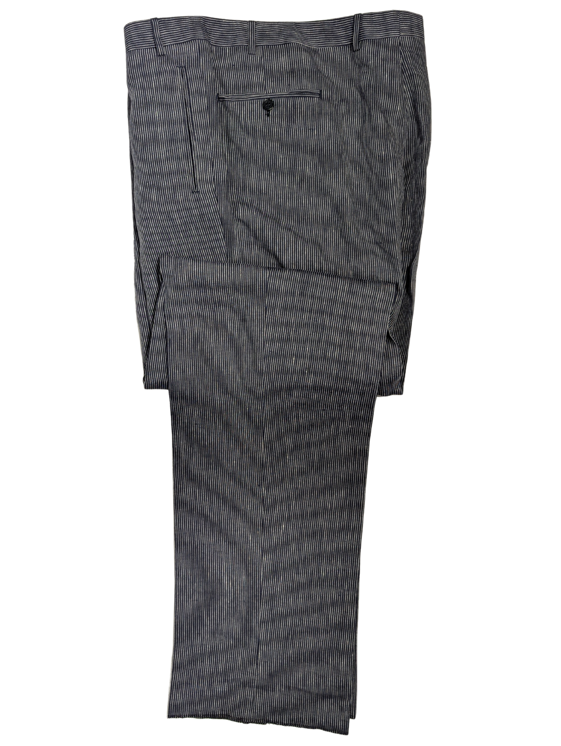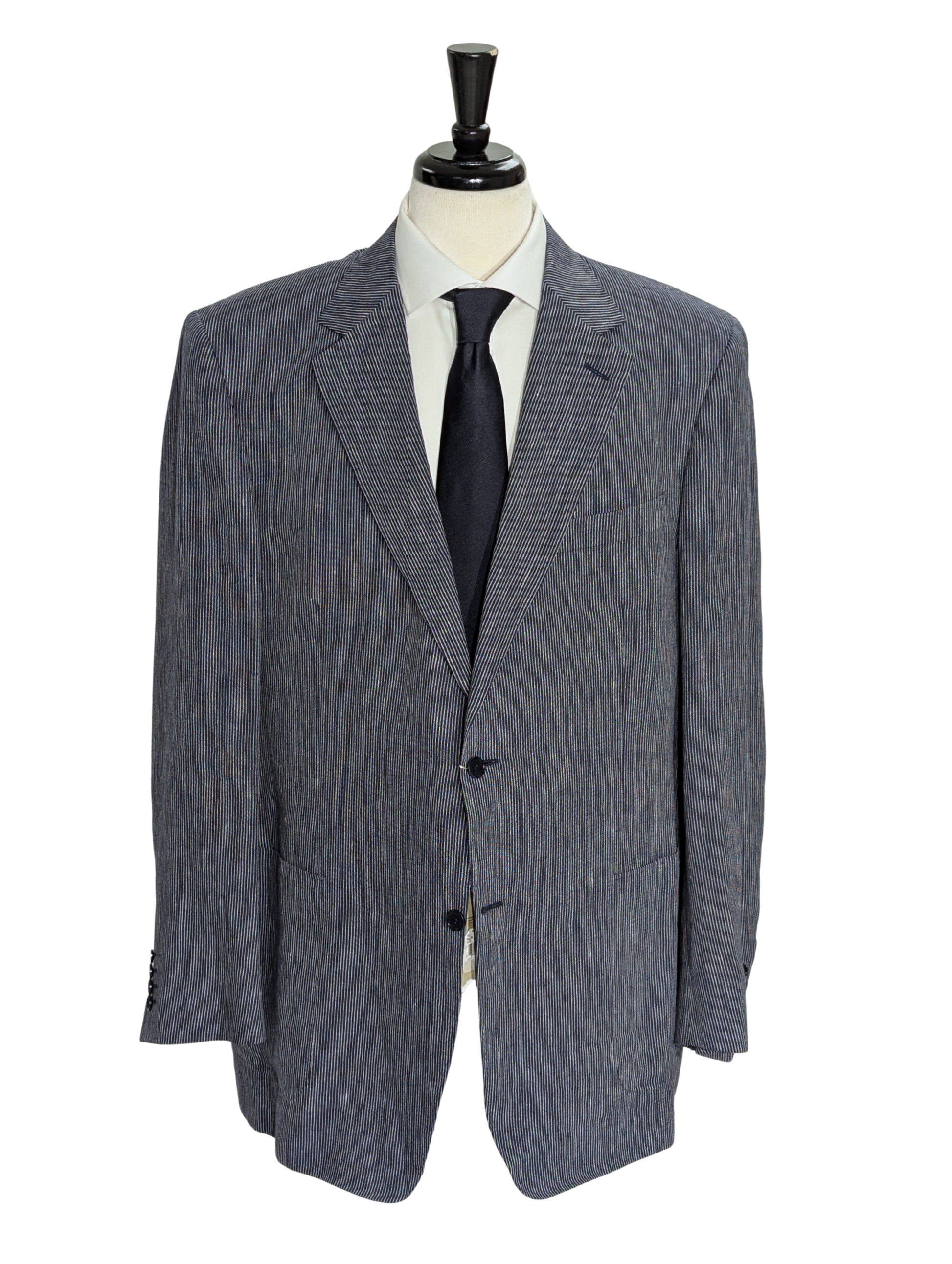 Canali Blue Pinstriped 100% Linen Suit 48L