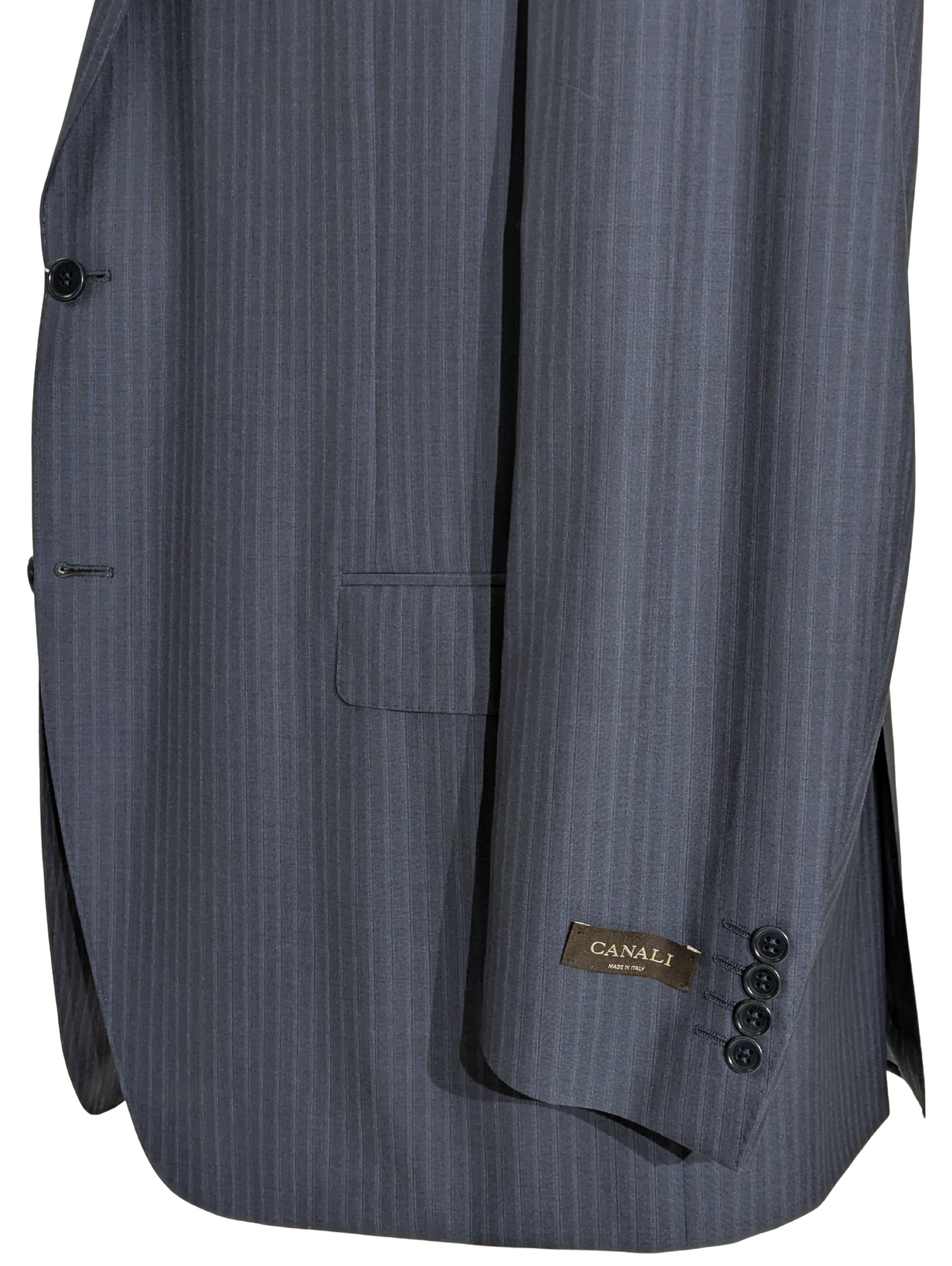 Canali Blue Tonal Pinstriped 100% Wool Suit 48L