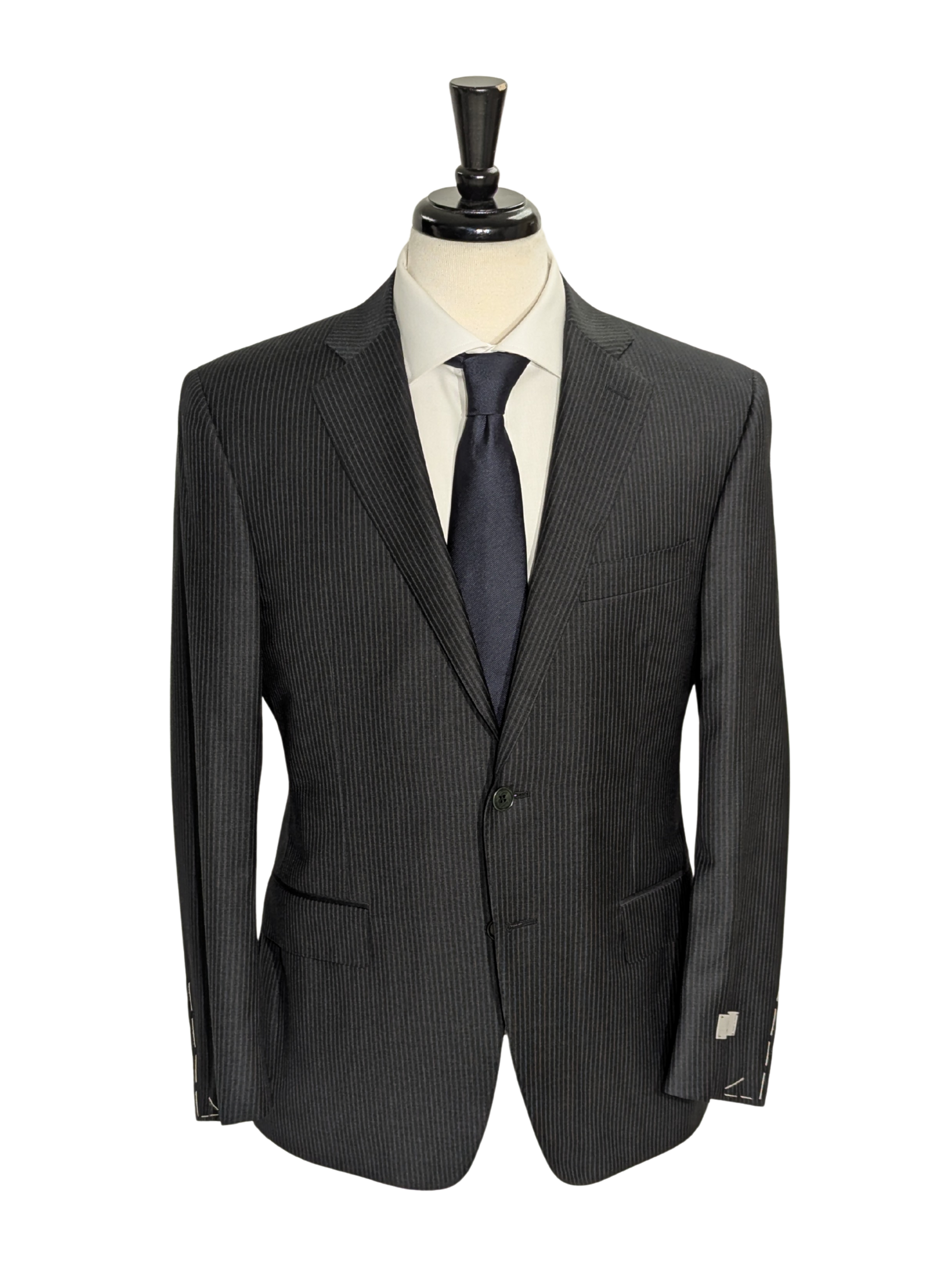 Canali Charcoal Pinstripe 100% Wool Suit 38S
