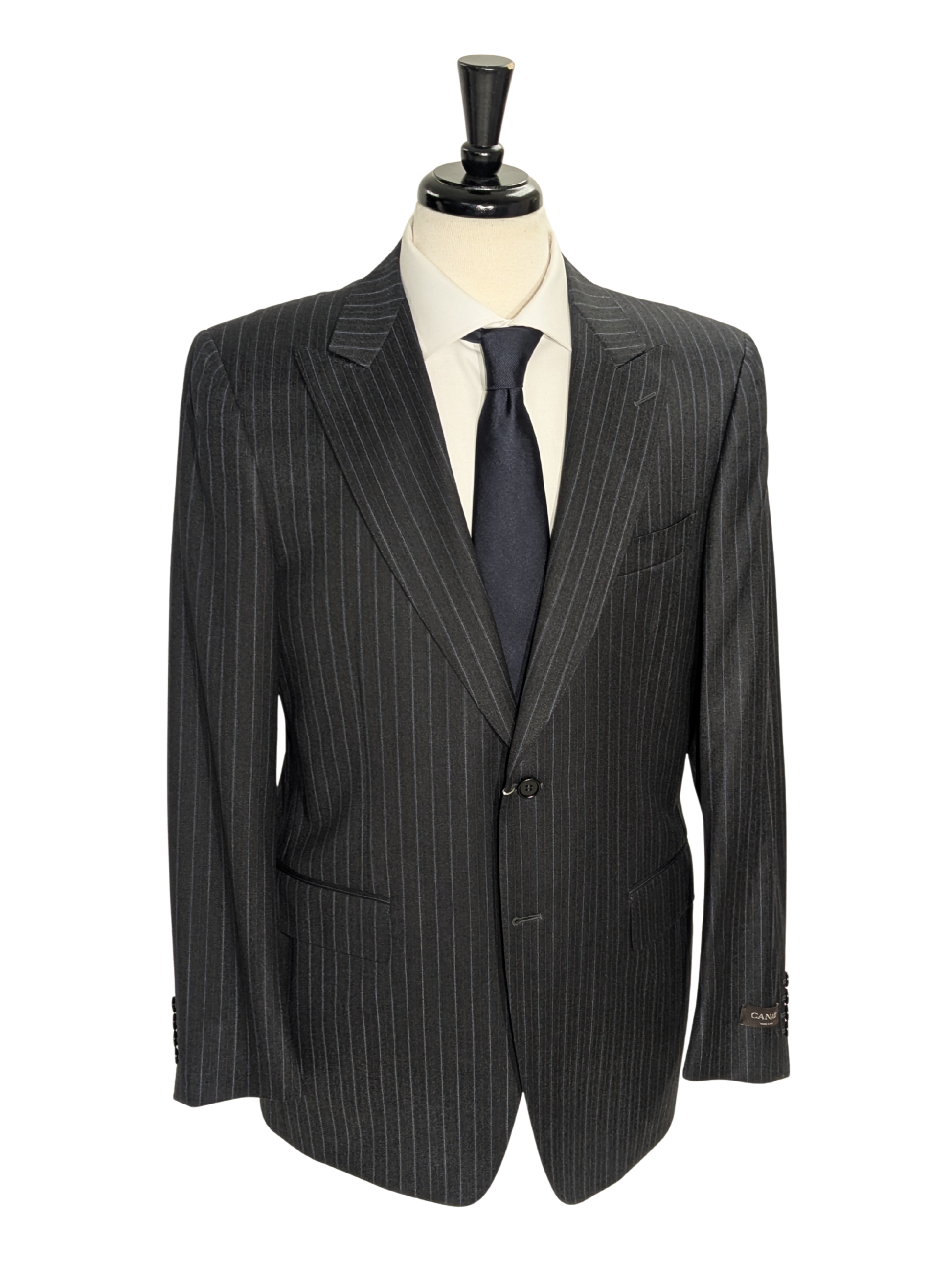 Canali Charcoal Pinstripe Peak Lapel 100% Wool Suit 40R