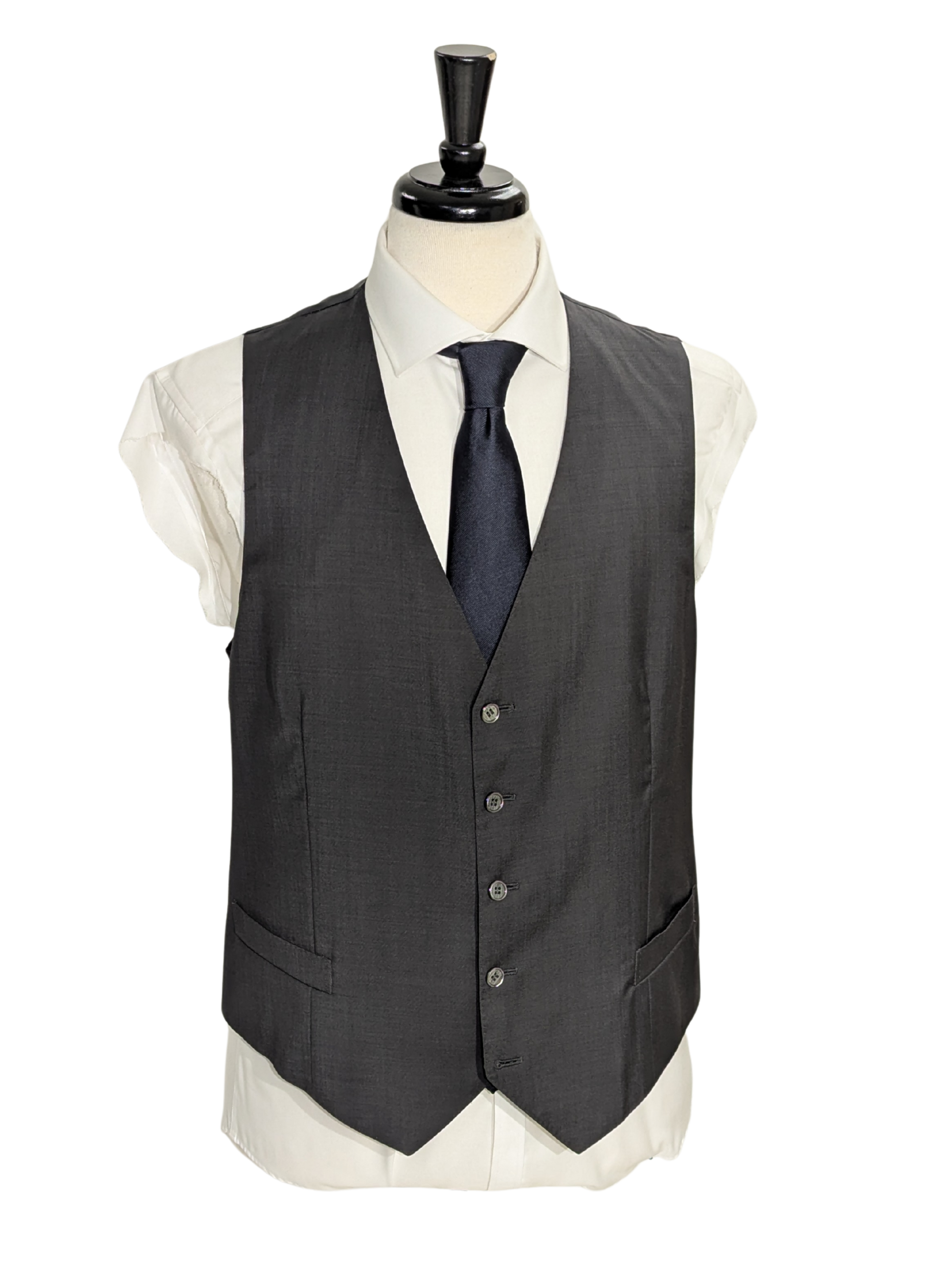 This Canali 3-piece suit in solid gray is a timeless statement of Italian elegance and precision tailoring. Crafted from 100% wool, the fabric offers a smooth hand and refined drape suitable for both formal occasions and professional settings. The fully-canvassed jacket features a two-button front, notch lapels, full lining, and dual side vents for comfort and structure. The matching vest adds a layer of versatility and sophistication, while the flat-front trousers complete the clean, modern silhouette. Whether worn as a full three-piece ensemble or separately, this suit reflects Canali’s signature attention to detail and luxury craftsmanship.