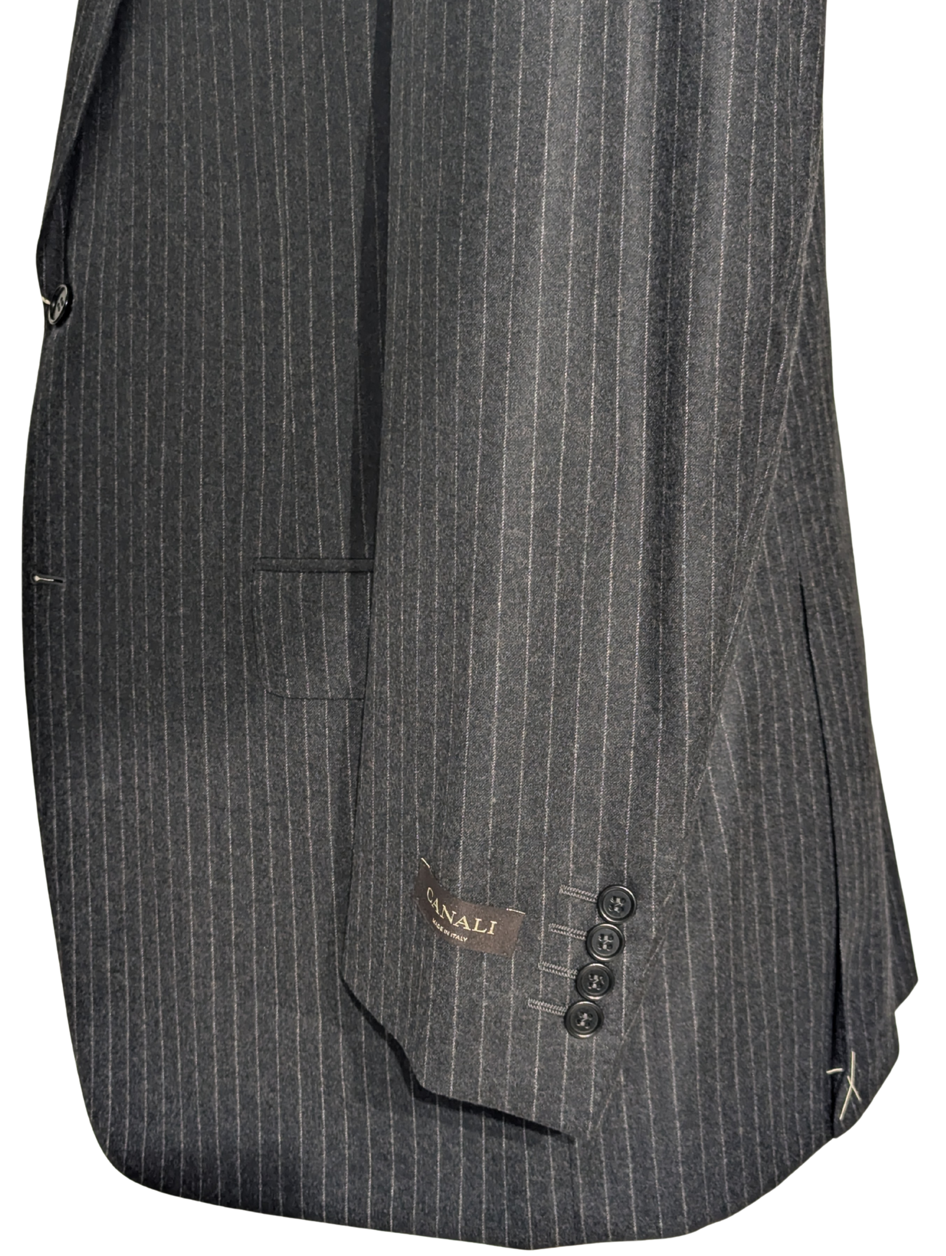 Canali Charcoal Pinstriped 100% Wool Suit 46R