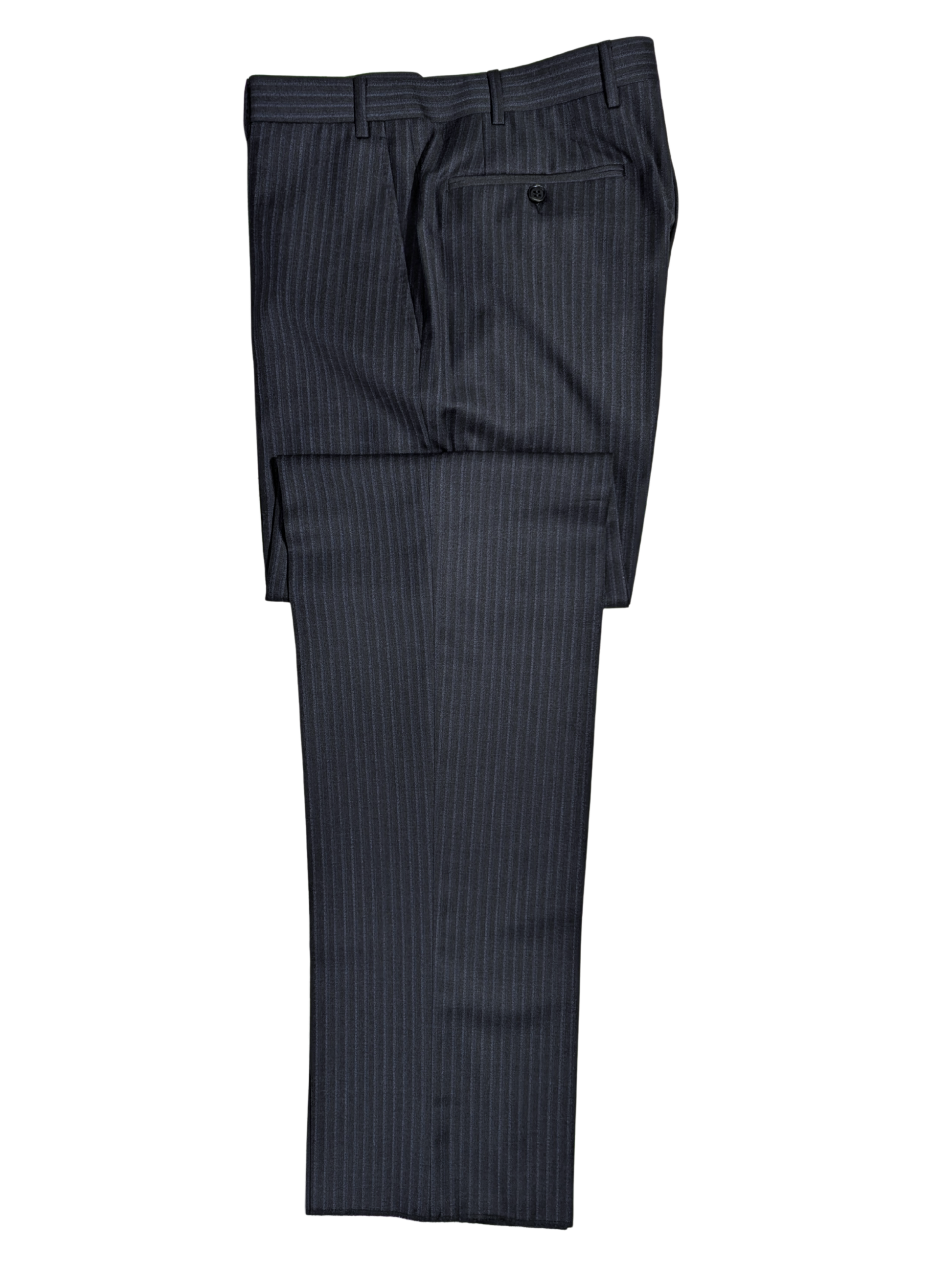 Elevate your wardrobe with this Canali charcoal striped suit, featuring a subtle yet refined tonal stripe pattern. The premium 100% wool fabric offers a soft hand and smooth finish, while the pinstripes provide depth and visual interest in an understated manner. Designed for the discerning gentleman, the jacket is fully canvassed for a structured fit and long-lasting shape. The classic two-button front, notch lapels, and dual side vents combine for a modern, tailored silhouette. Paired with flat-front trousers, this suit is ideal for any business setting, formal event, or sophisticated evening affair. Crafted in Italy, this suit reflects Canali’s commitment to timeless style and impeccable craftsmanship.