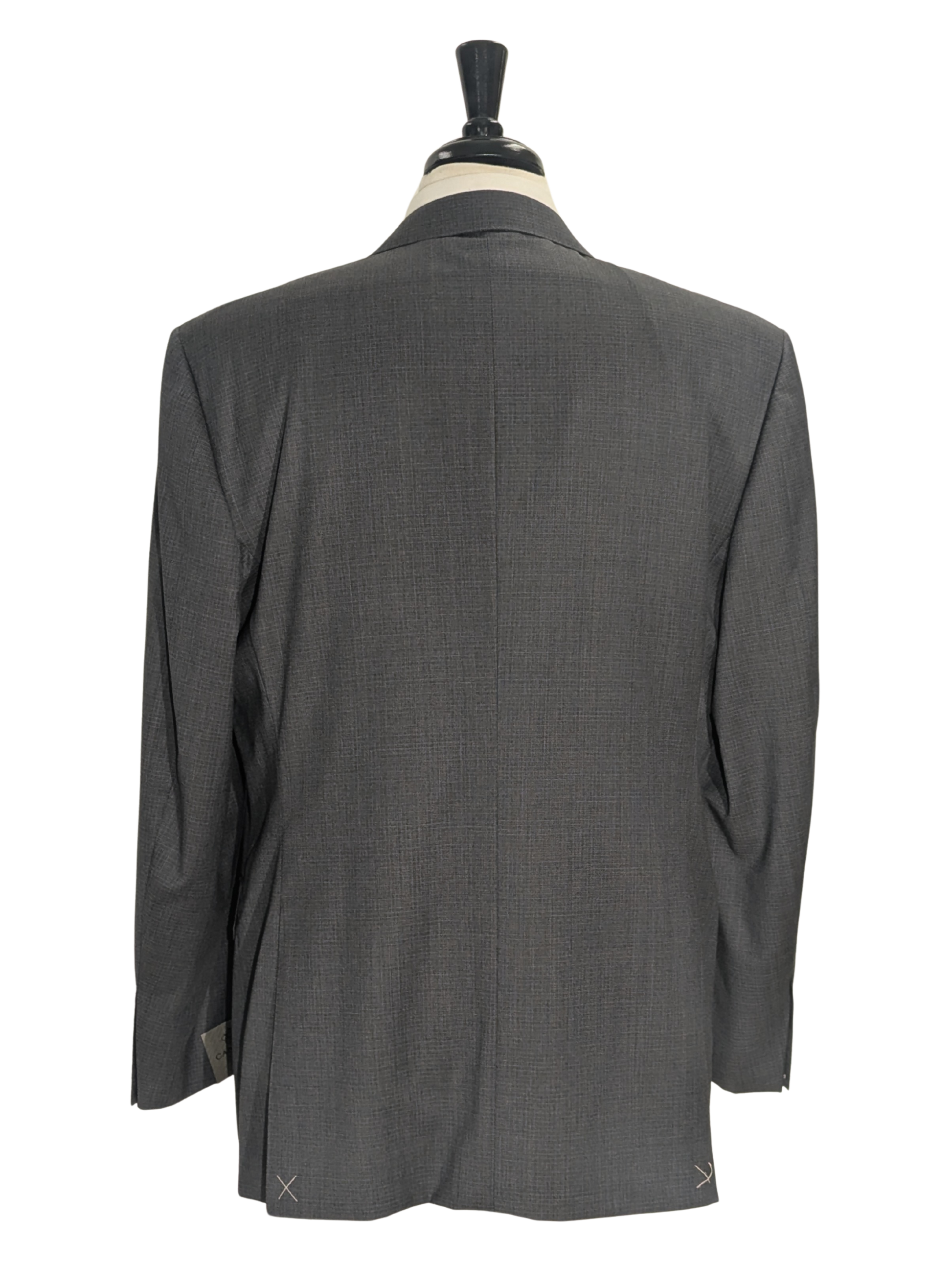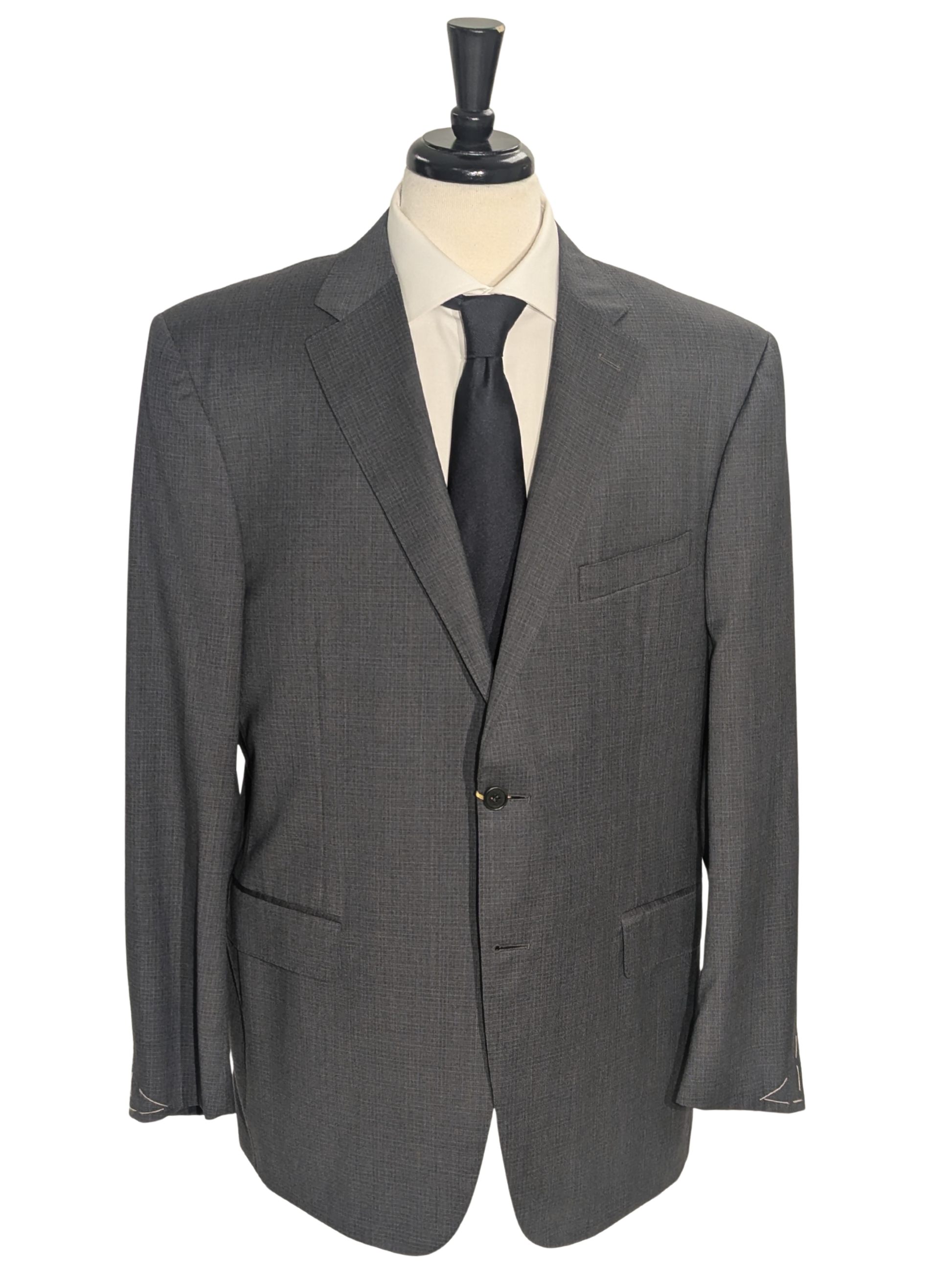This Canali suit is a refined blend of classic tailoring and understated texture. Crafted from premium wool, the fabric features a gray base with a subtle blue micro-check that adds depth and visual interest while remaining versatile and professional. It’s a smart choice for business, formal events, or elevated day-to-day wear.