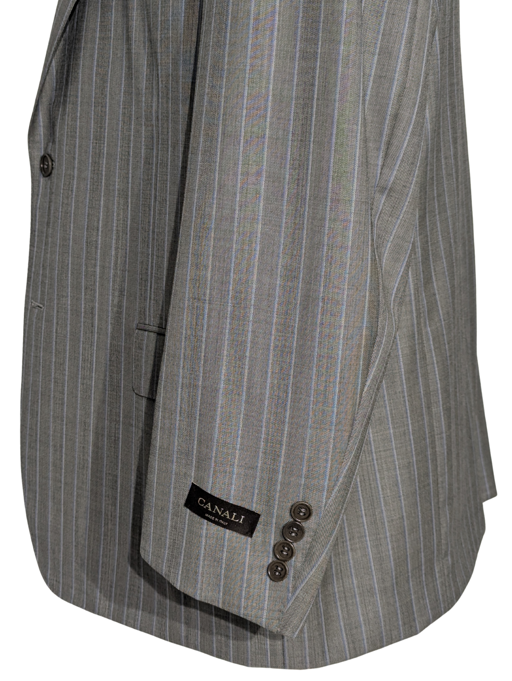 Canali Light Gray Pinstripe 100% Wool Suit 48S
