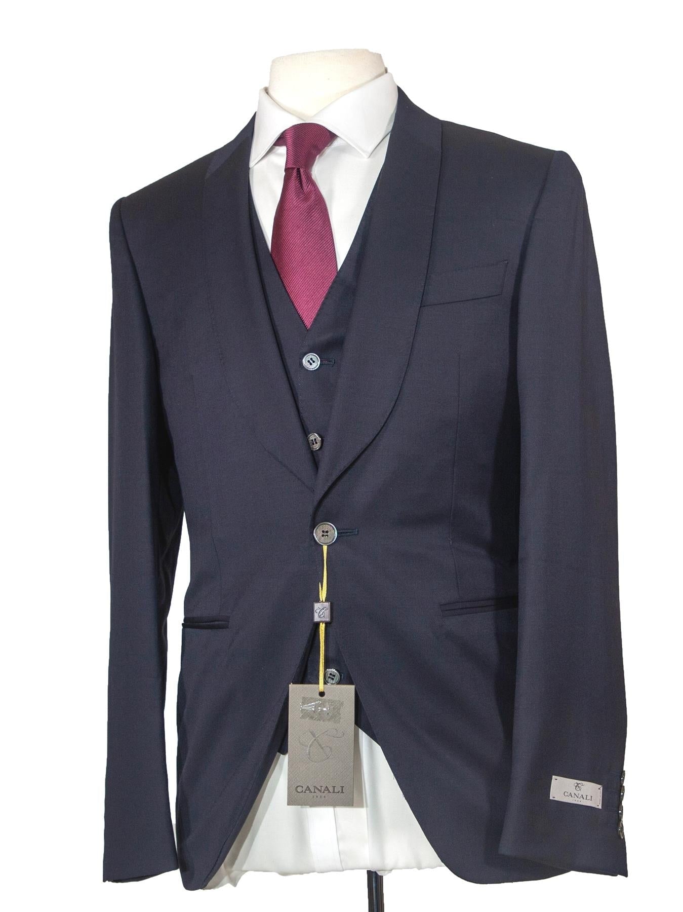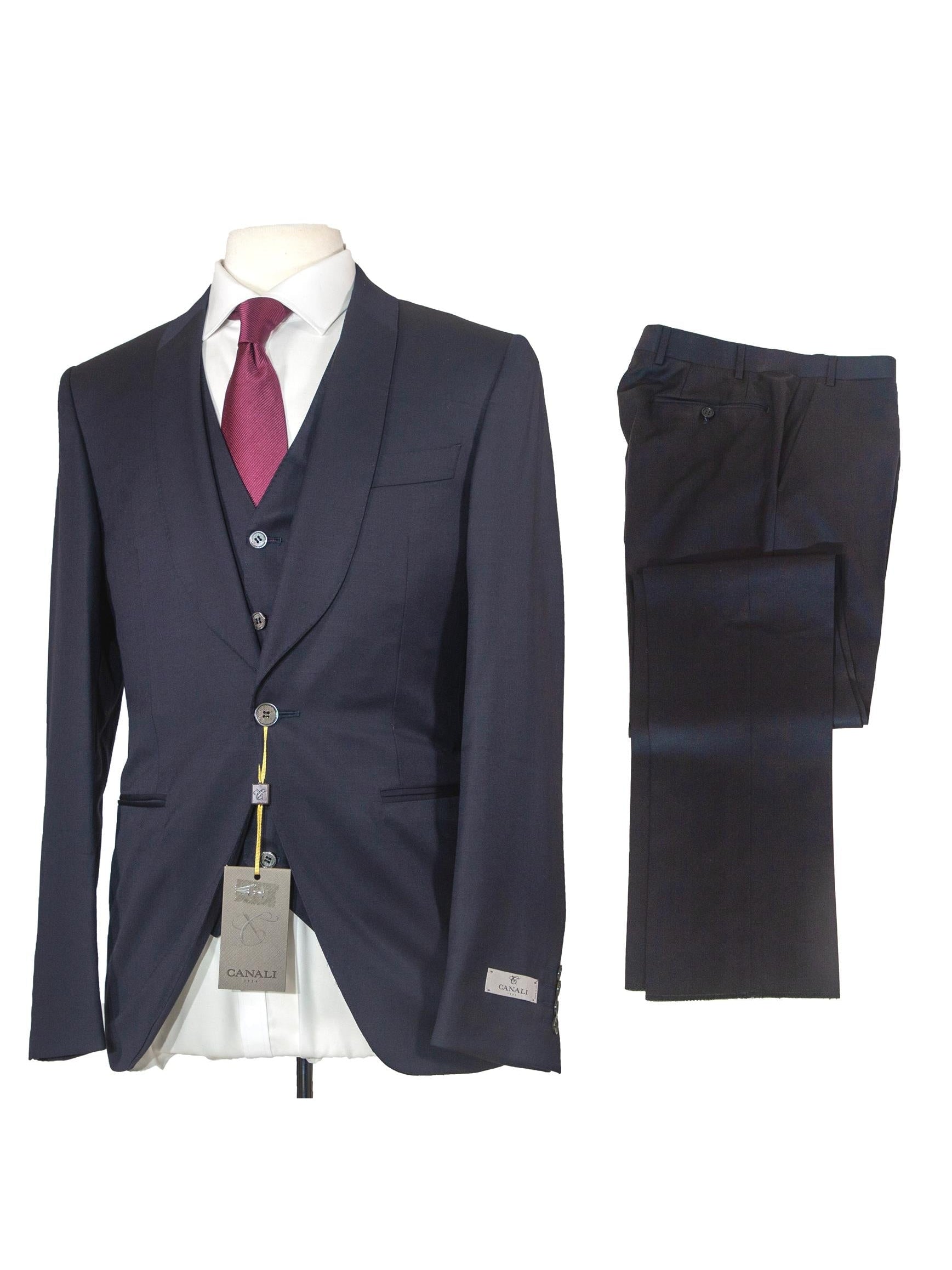 Canali Mens 38R Drop 8 Navy Blue 100% Wool Slim Fit 3 Piece Suit