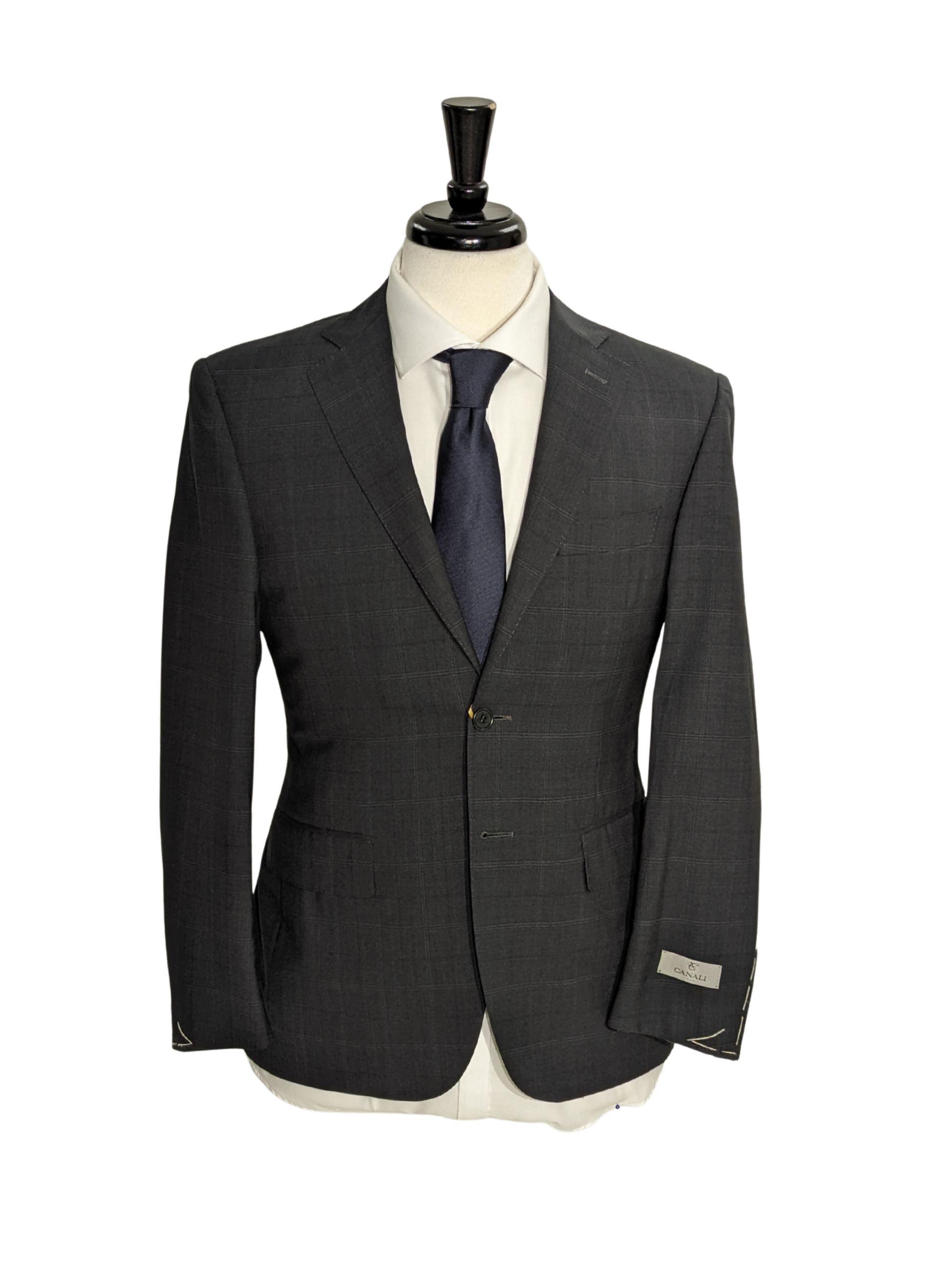 Canali Men's Charcoal Windowpane 100% Wool Suit 34S