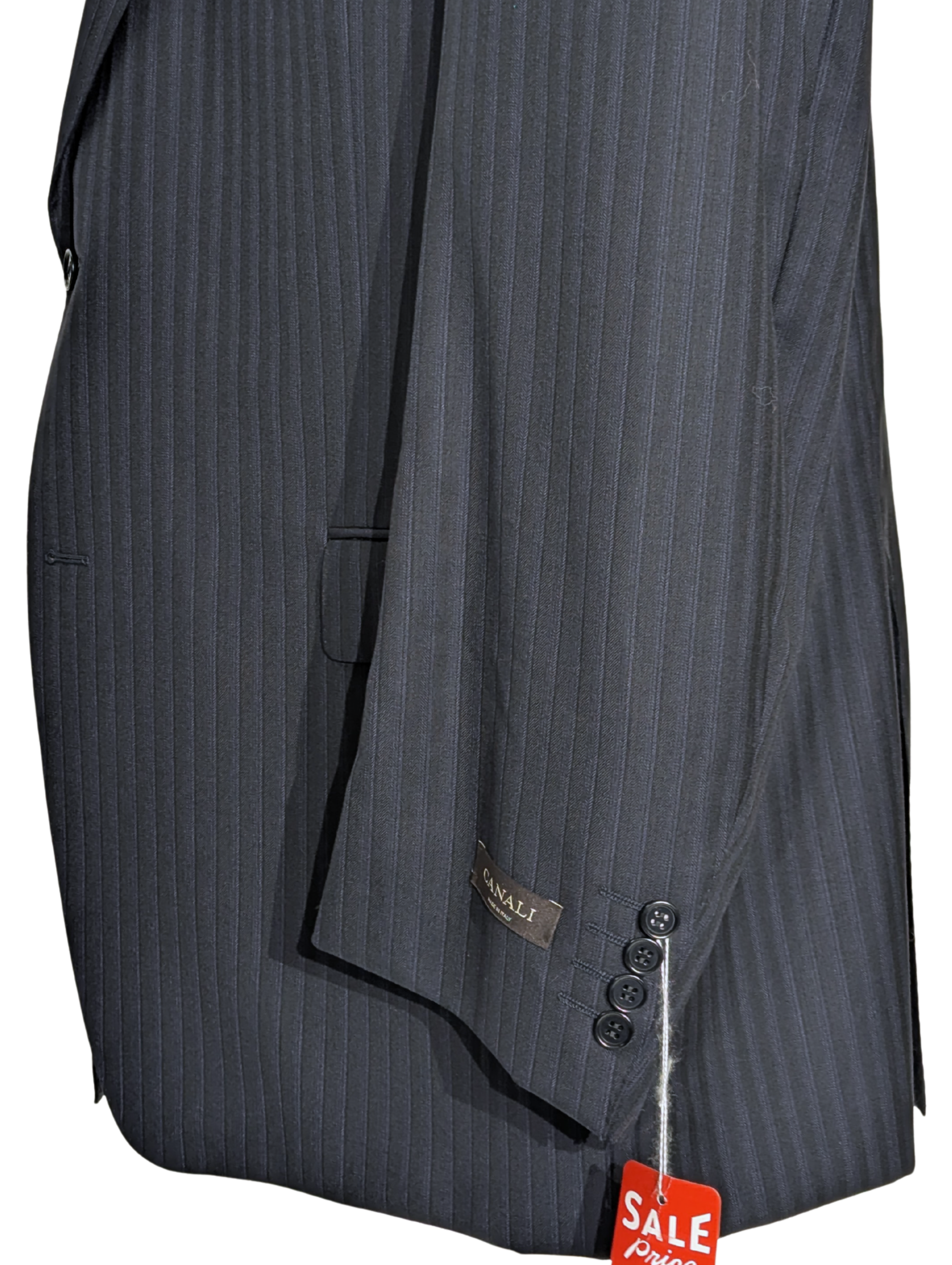 Canali Navy Pinstriped 100% Wool 2 Button Suit 52L
