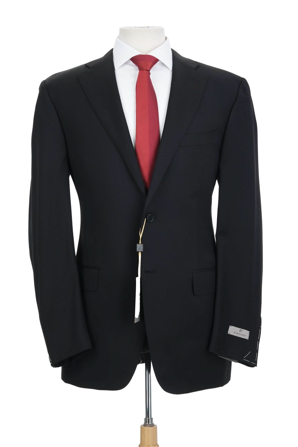 Canali Solid Black 100% Wool 2 Button Suit 46L