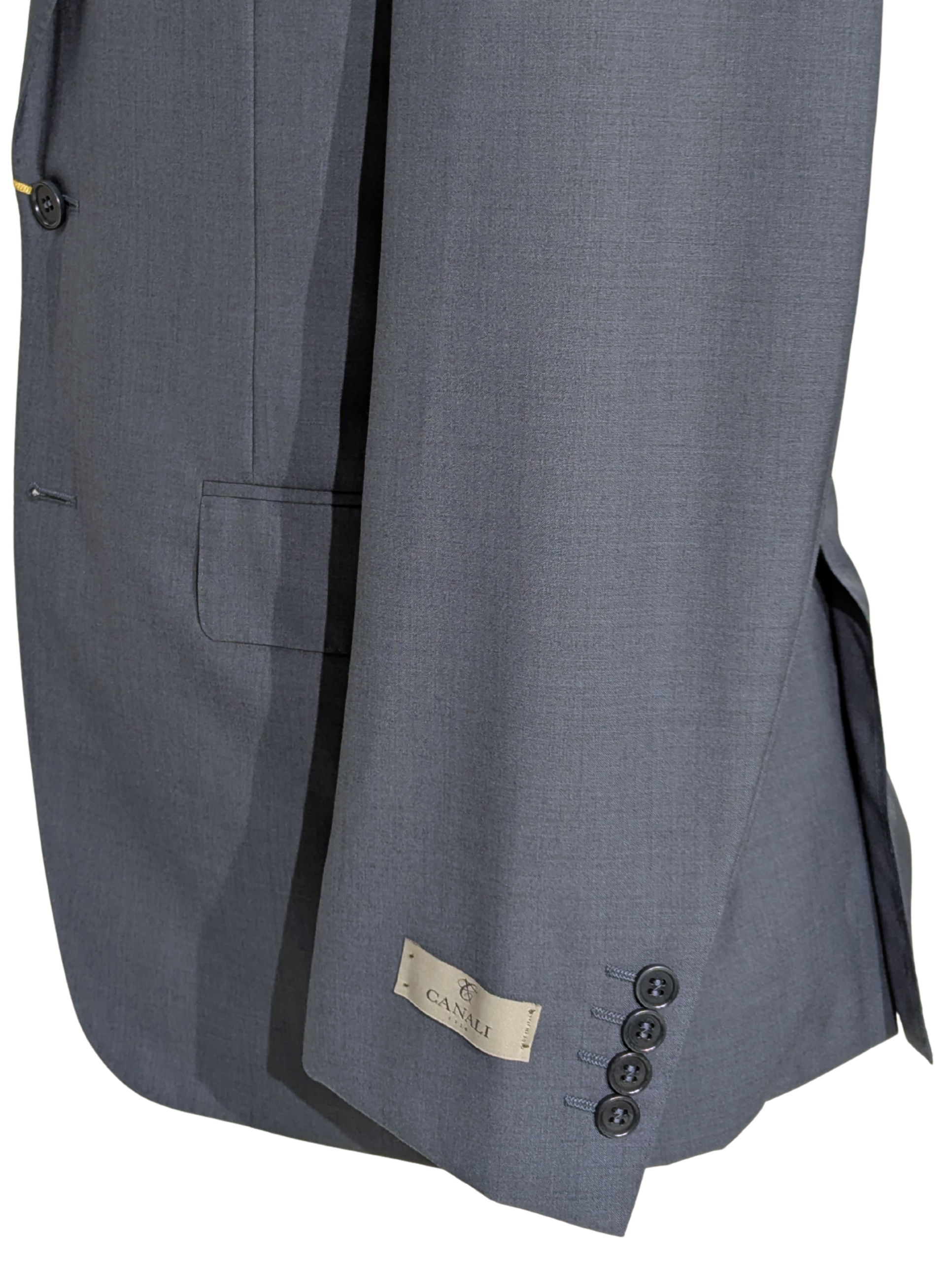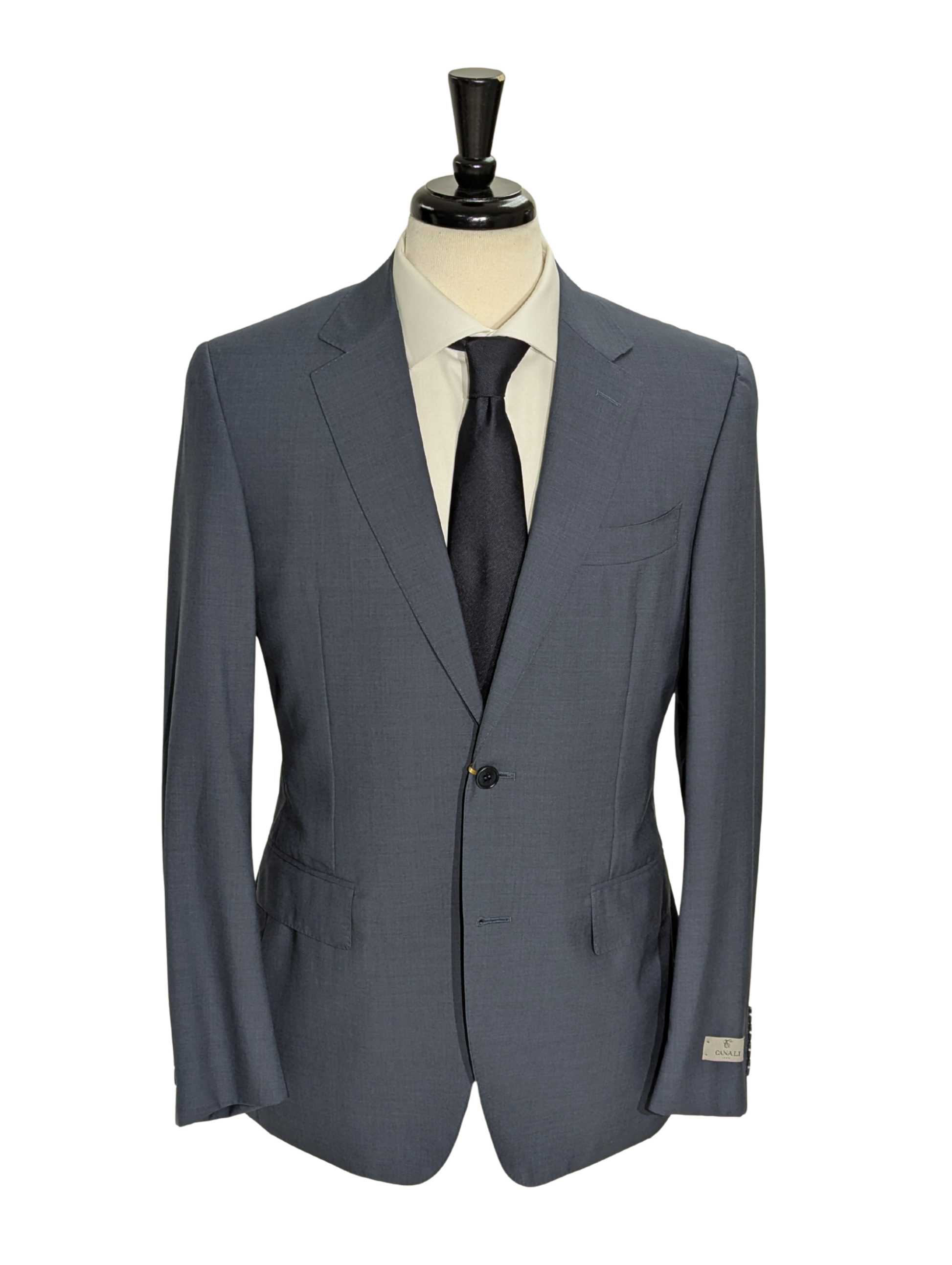 This Canali suit showcases the brand's hallmark Italian craftsmanship in a solid blue 100% wool construction. The rich, medium-blue hue offers versatility for both business and formal settings, while the smooth wool fabric delivers a clean, structured drape with lightweight breathability. The fully-canvassed jacket is tailored for superior shape retention and comfort, featuring full lining, notch lapels, and dual side vents. A two-button front and flap pockets complete its timeless silhouette. The suit includes flat-front trousers ready to be tailored to your ideal length. An elegant, seasonless essential from one of Italy’s most revered menswear houses.
