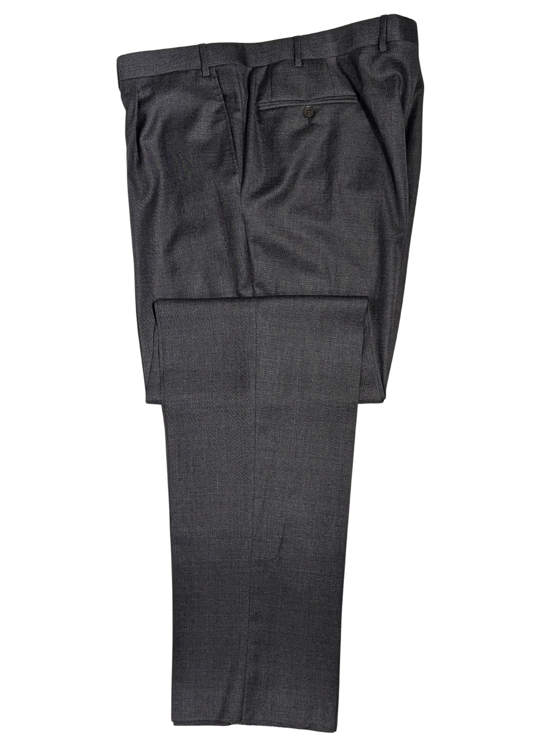 This Canali solid gray wool suit offers timeless elegance with Italian precision. Crafted from premium wool in a versatile gray tone, it delivers a clean, classic silhouette suitable for both business and formal settings. The jacket is fully canvassed for long-lasting structure and impeccable drape, featuring full lining, dual side vents, and a two-button front with notch lapels. Traditional pleated trousers complement the jacket. A wardrobe essential from Canali, known for understated luxury and expert craftsmanship.