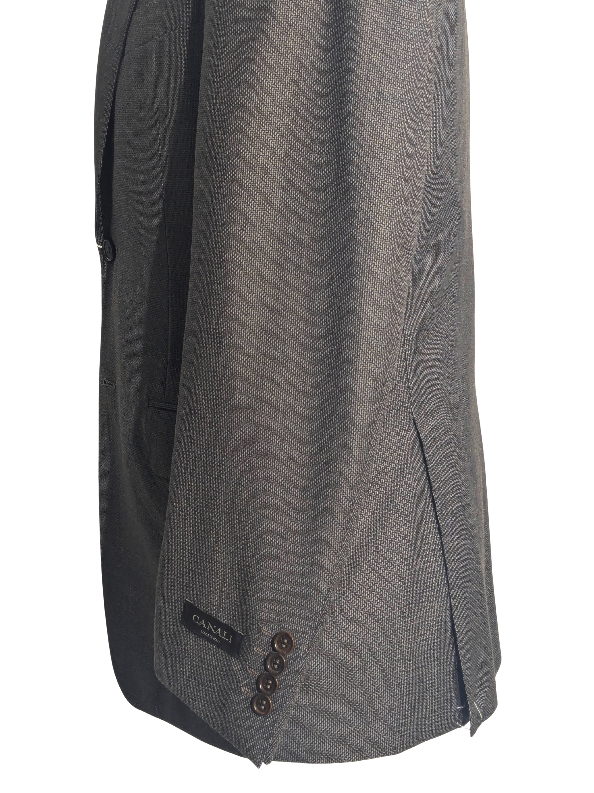 Canali Brown Basketweave 100% Wool 2 Button Suit 36R