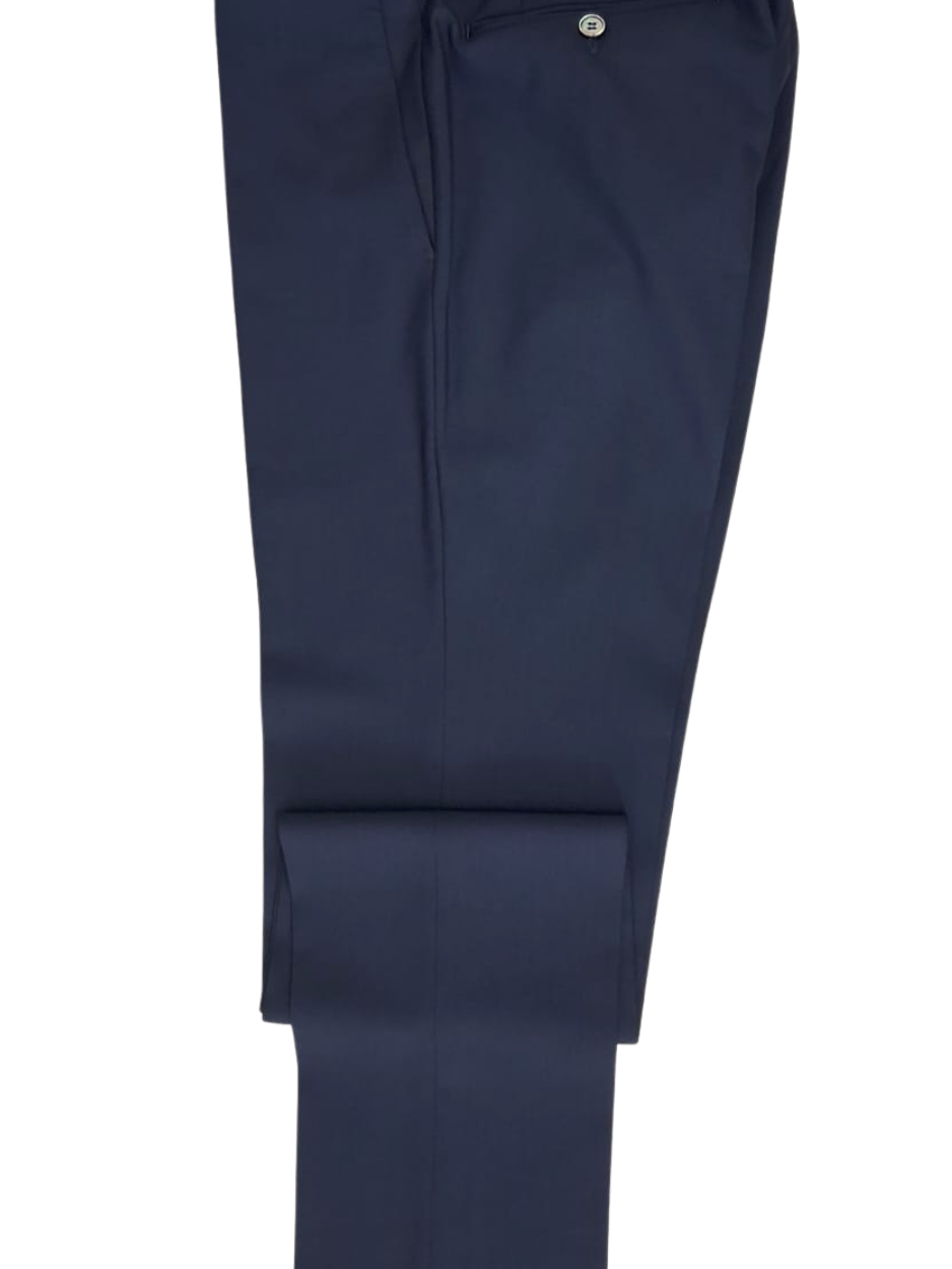 - Flat-front trousers, unhemmed for personalized tailoring.