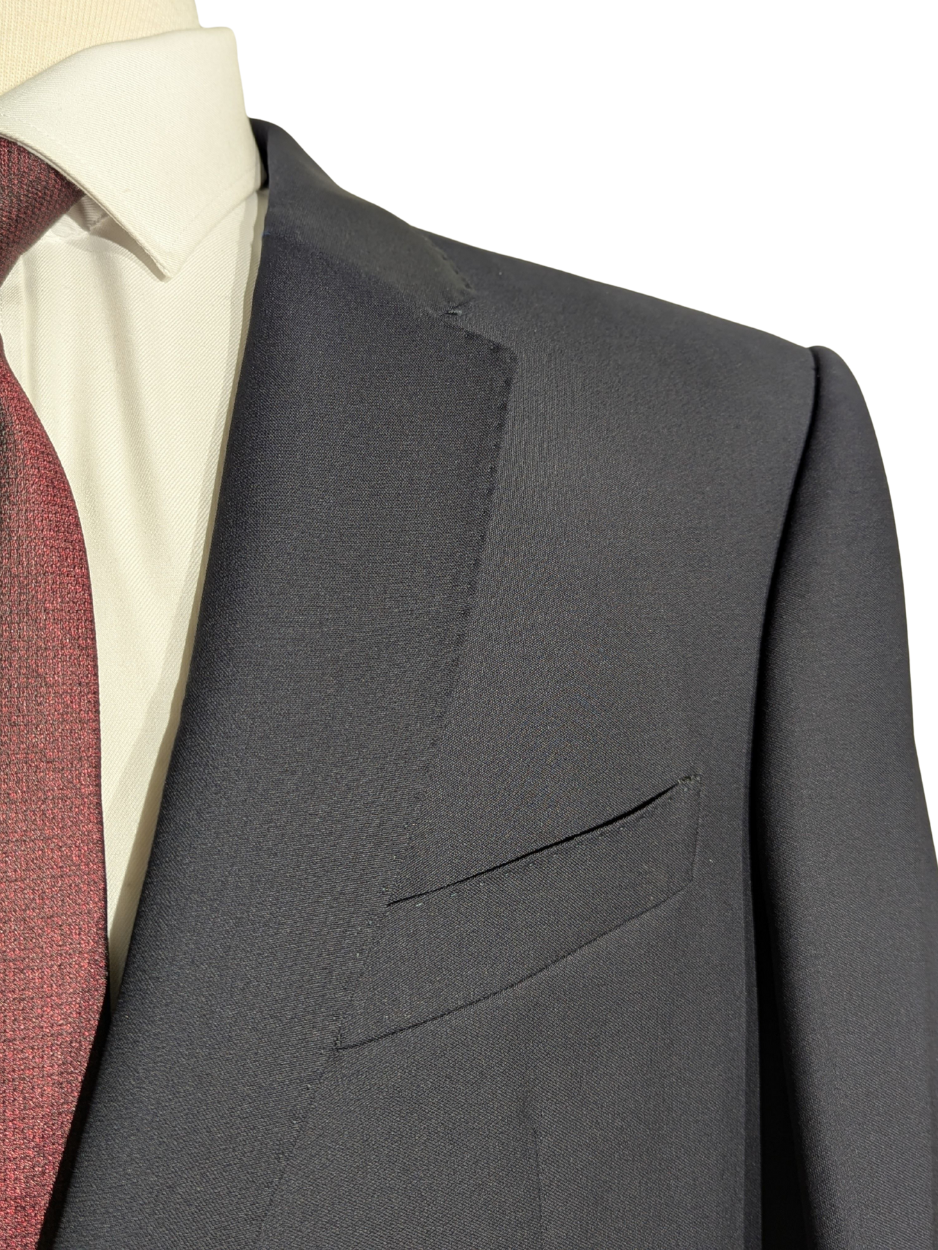 Armani Collezioni M-Line Solid Black Notch Lapel Modern Fit 2 Button Wool Suit 46R