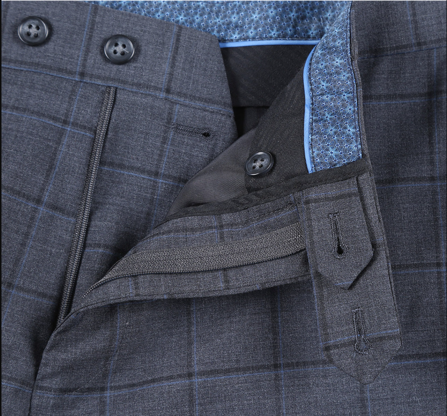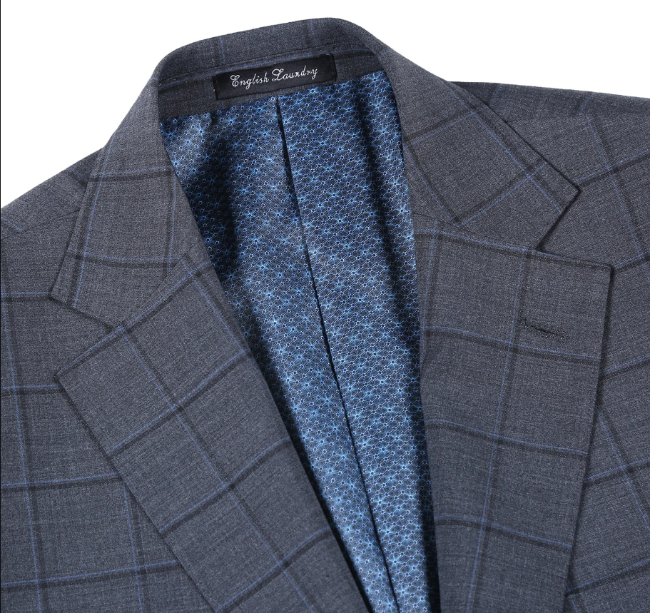 Looking for a finely tailored notch lapel suit at an unbeatable price? You’ve found it. This English Laundry charcoal gray grid check suit is crafted from a premium blend of wool, polyester and Lycra, offering structure, stretch, and breathability for all-day comfort. Designed in a slim fit, it delivers a sharp, modern silhouette perfect for weddings, special events, or standout office wear.