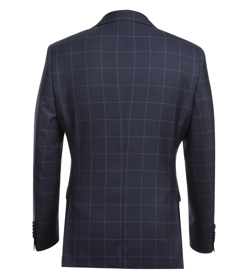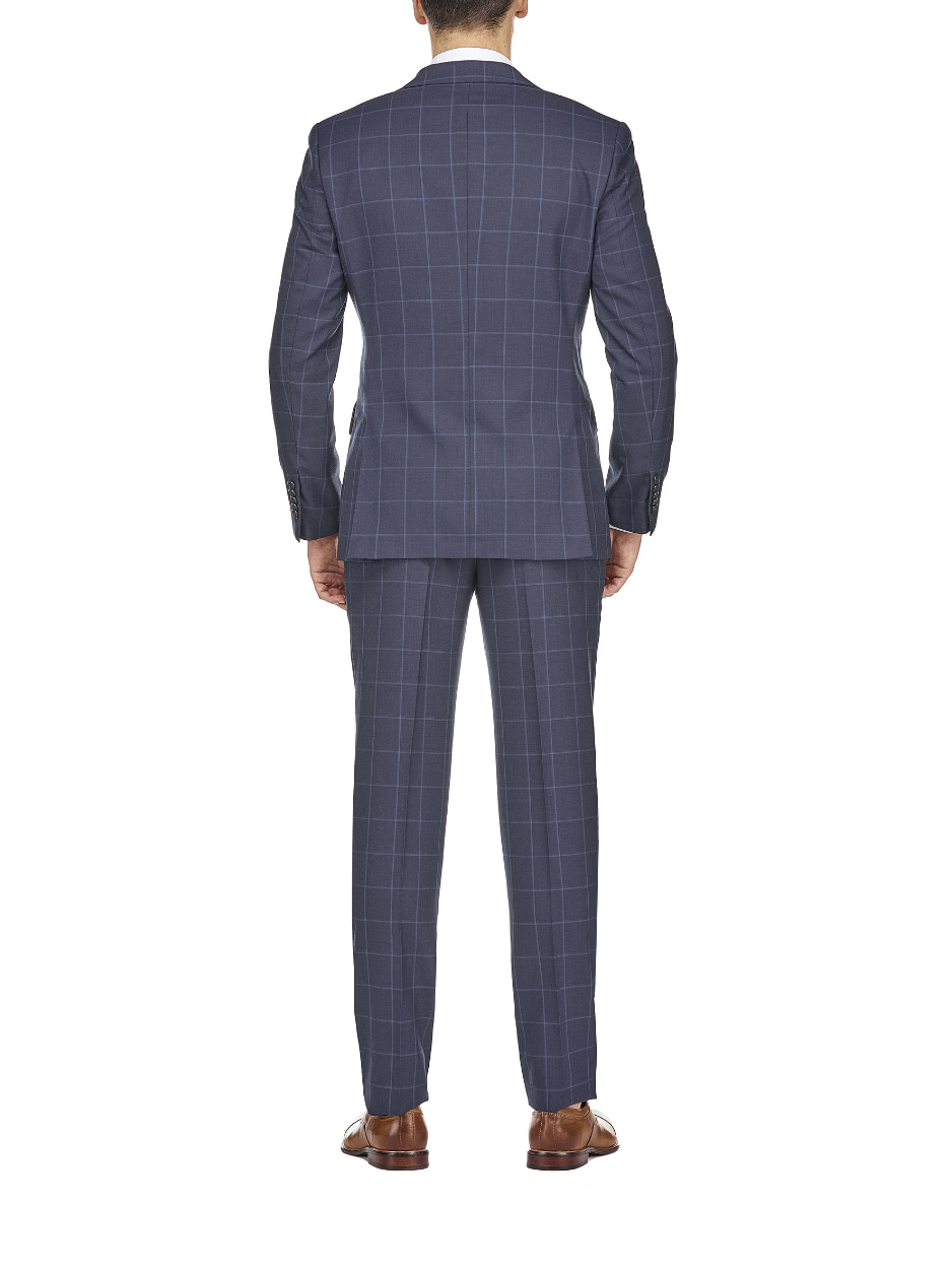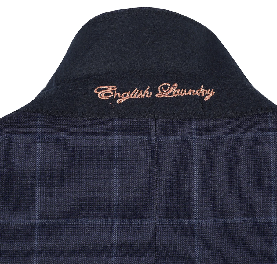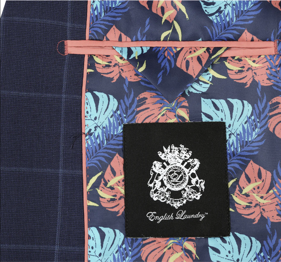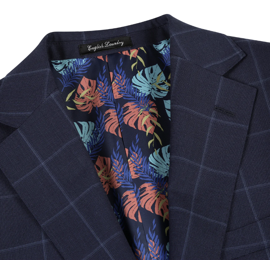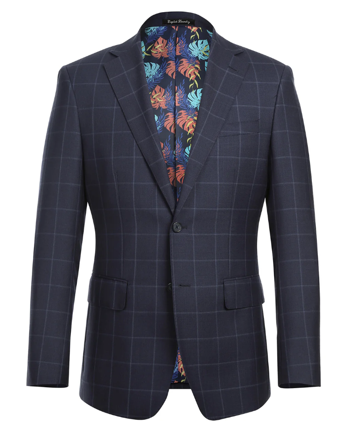 Looking for a finely tailored wool suit at an unbeatable value? You’ve found it. This English Laundry navy windowpane suit is crafted from a premium wool-polyester blend, delivering durability with a refined, comfortable feel. Cut in a modern slim fit, it features a classic notch lapel, two-button closure, flap pockets, and dual side vents for a structured yet breathable silhouette. Finished with a subtle windowpane pattern, this versatile suit is ideal for weddings, special occasions, or standout professional wear.
