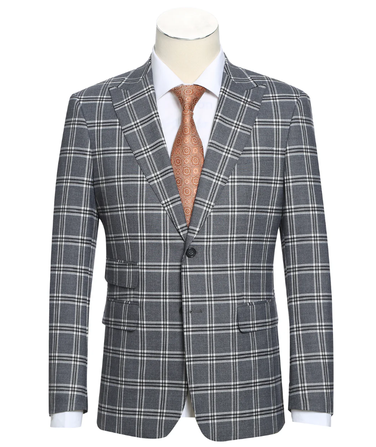 Looking for a finely tailored peak lapel suit at an unbeatable price? You’ve found it. This English Laundry windowpane check gray suit is crafted from a premium blend of polyester, rayon and spandex, offering both structure and stretch for all-day comfort. Designed in a slim fit, it delivers a sharp, modern silhouette perfect for weddings, special events, or standout office wear.