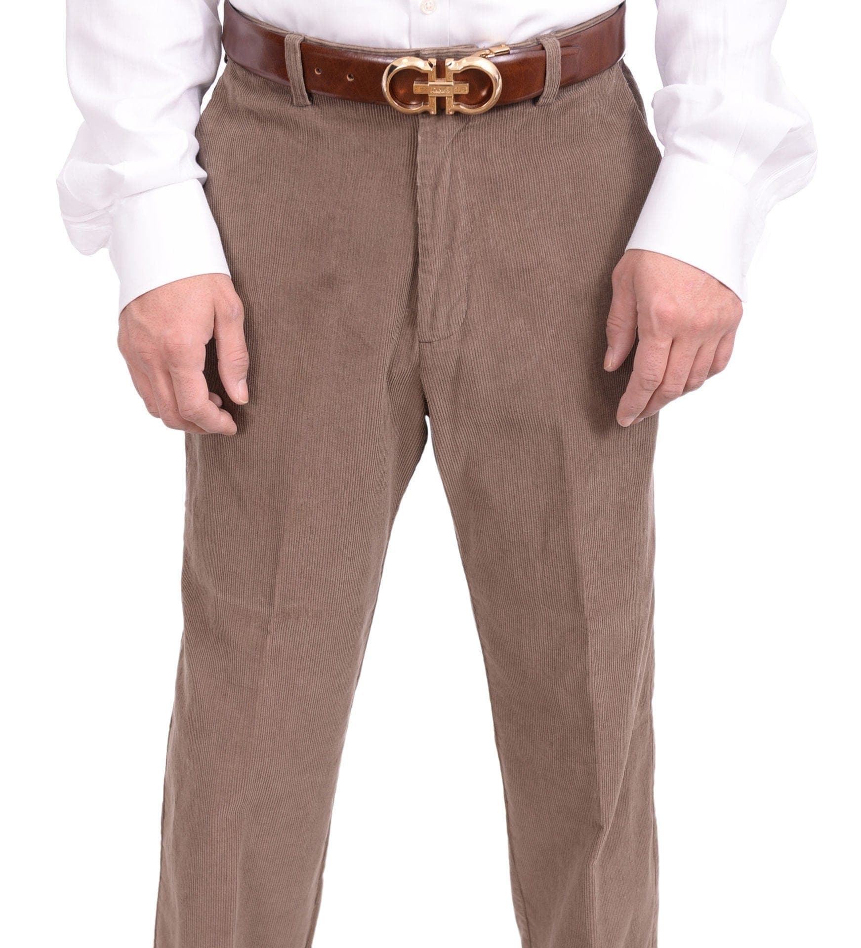 Haggar Regular Fit Khaki Brown Corduroy Flat Front Cotton Washable Casual Pant