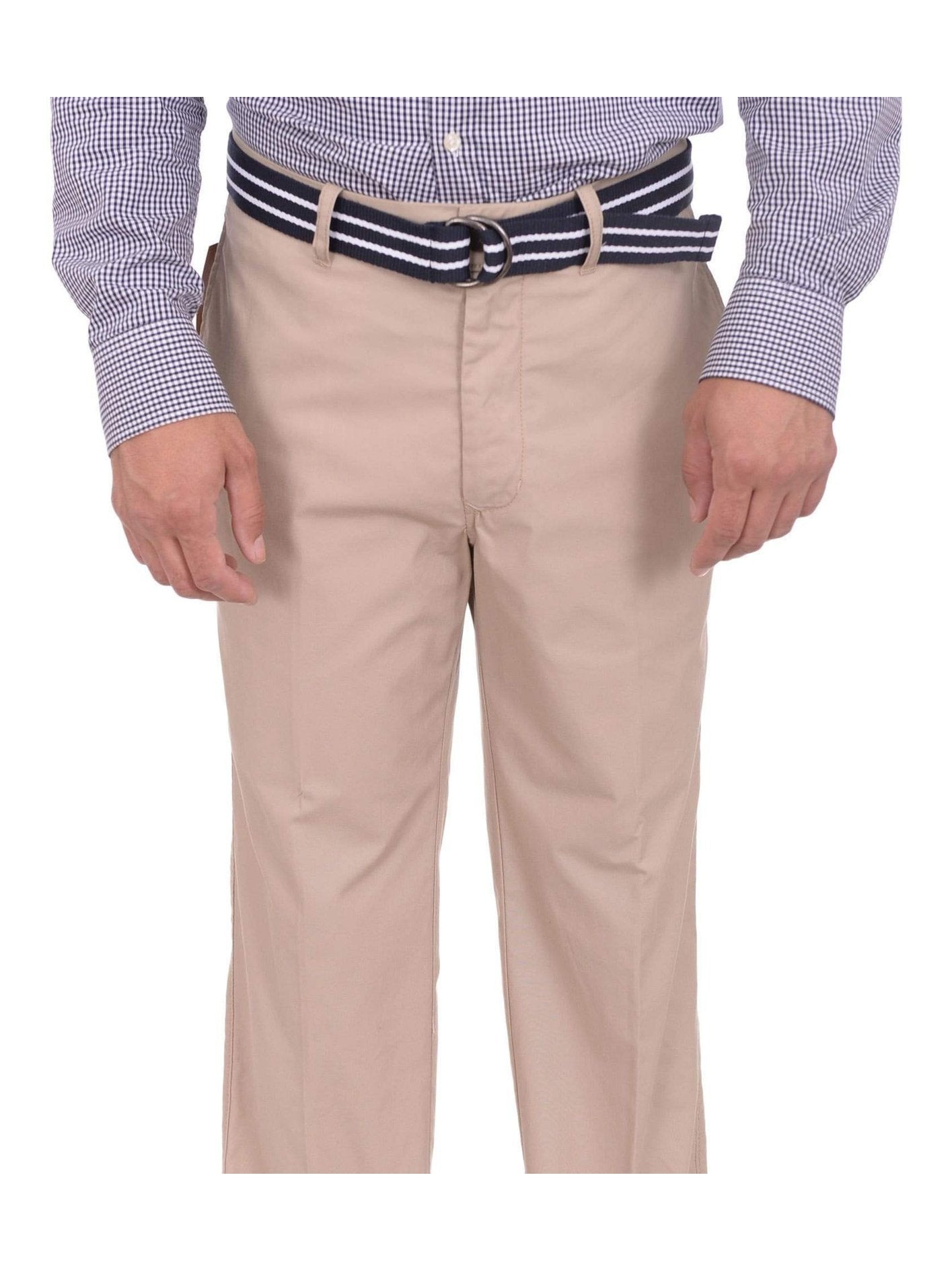 Haggar Regular Fit Solid Beige Flat Front Washable Chino Cotton Blend Pants