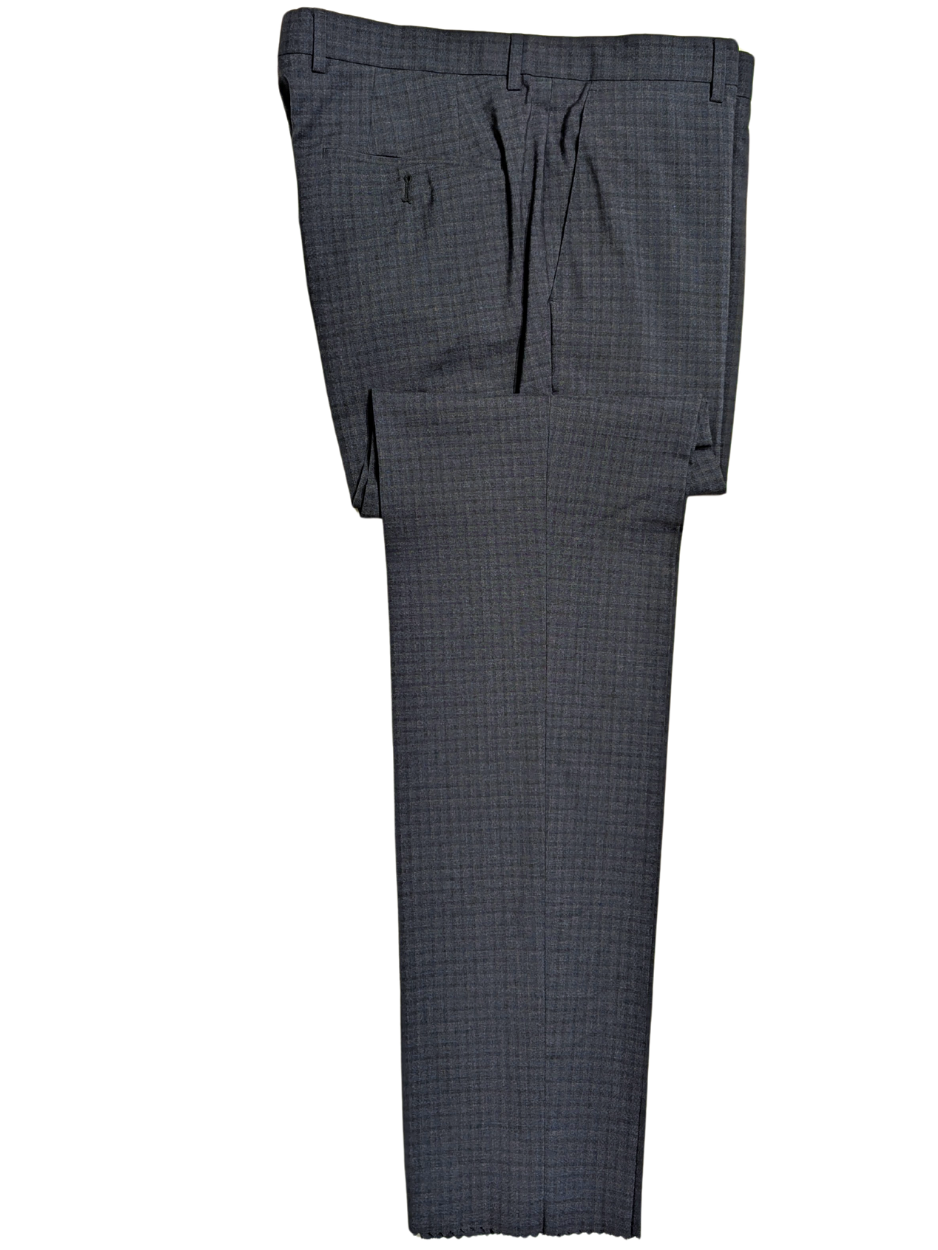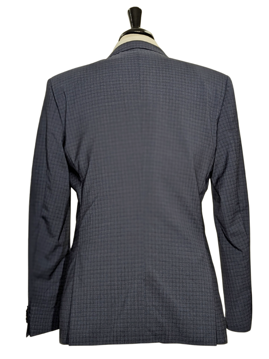 This Hugo Boss suit is crafted from luxurious Lanificio wool, offering a soft hand feel with excellent drape and durability. The checked blue and gray fabric adds subtle depth, while notch lapels and a 2-button front create a timeless, tailored look. Ideal for business or formal occasions, it’s a refined wardrobe essential with modern appeal.
