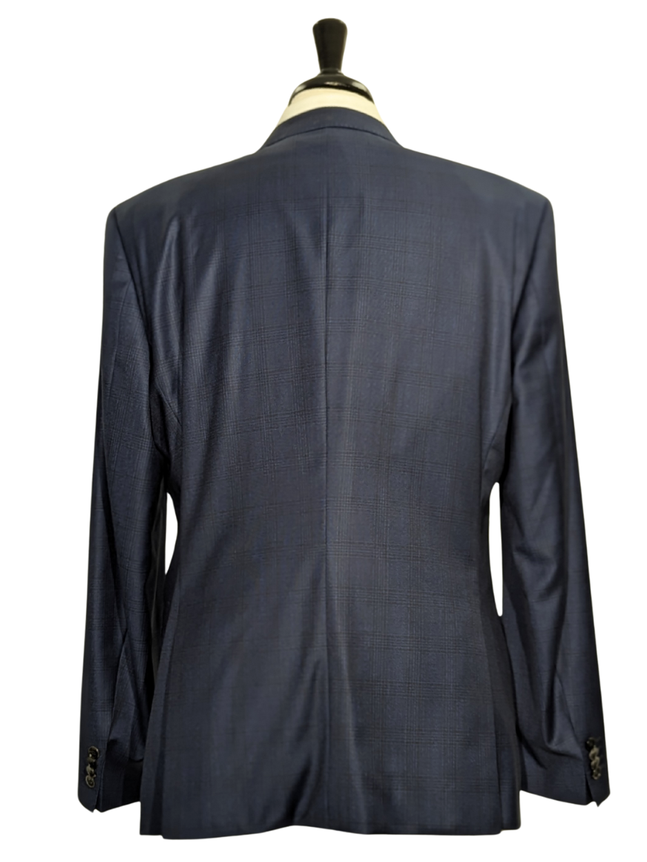 Hugo Boss Super 120s Navy Blue Plaid Windowpane Slim Fit Notch Lapels Wool 2-Button Suit - 44R