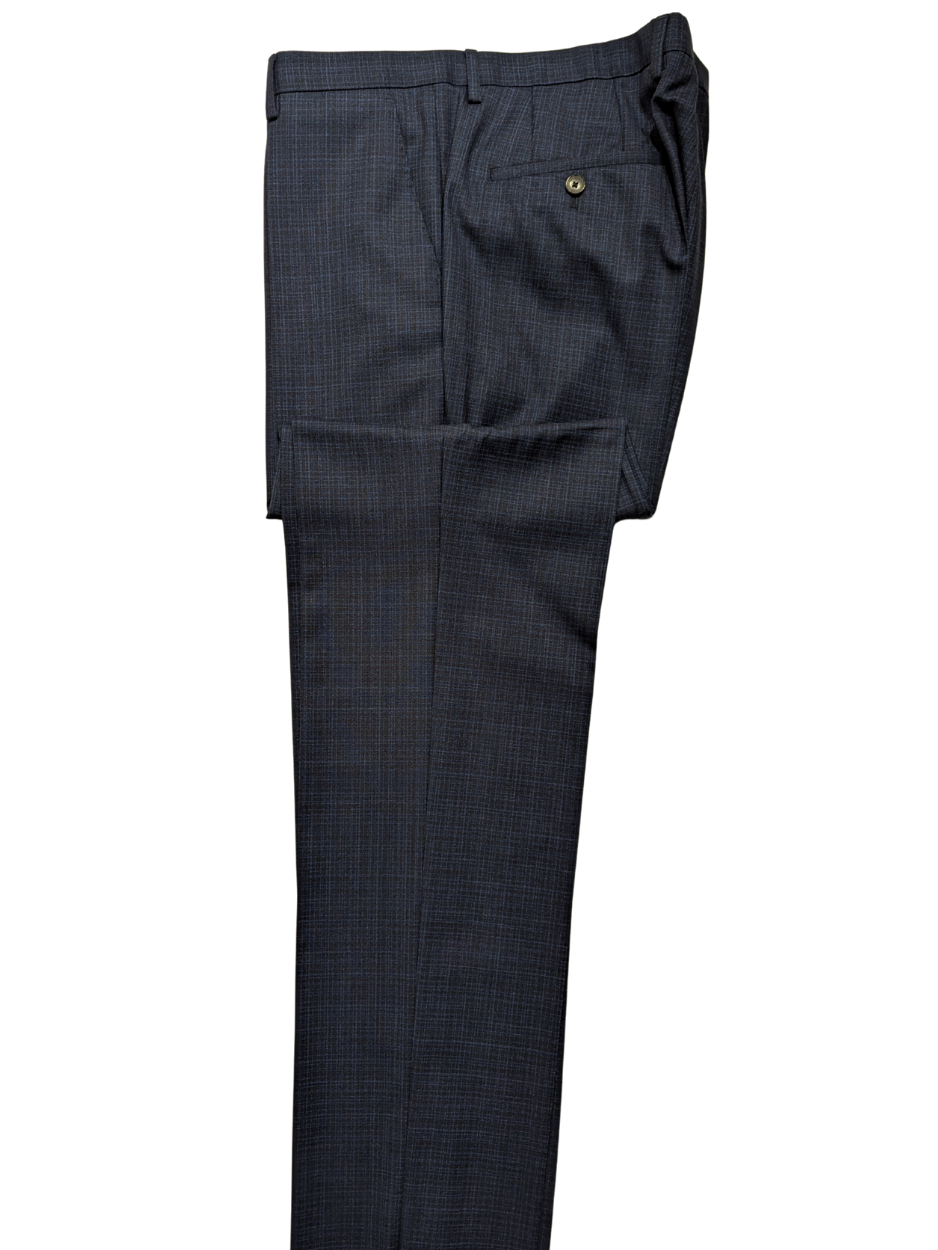 This Hugo Boss suit is crafted from luxurious Super 130's Wool by Drago, offering a soft hand feel with excellent drape and durability. The textured blue and black fabric adds subtle depth, while notch lapels and a 2-button front create a timeless, tailored look. Ideal for business or formal occasions, it’s a refined wardrobe essential with modern appeal.
