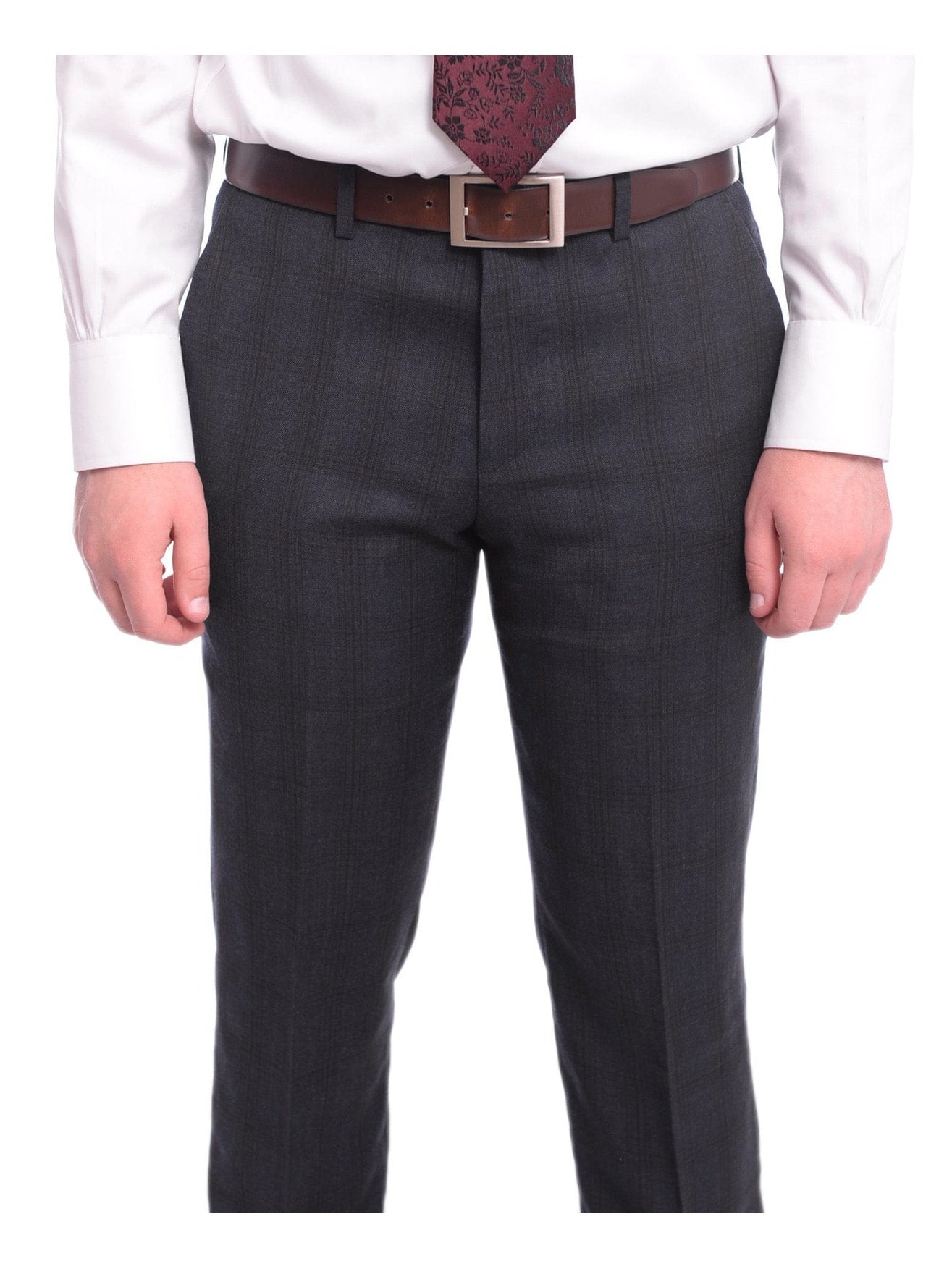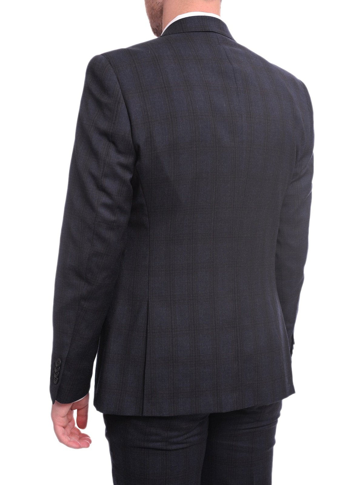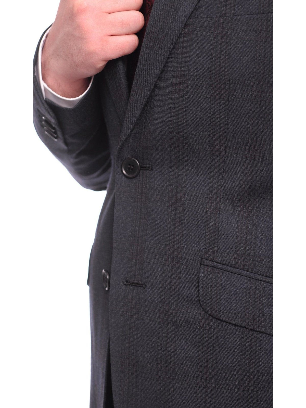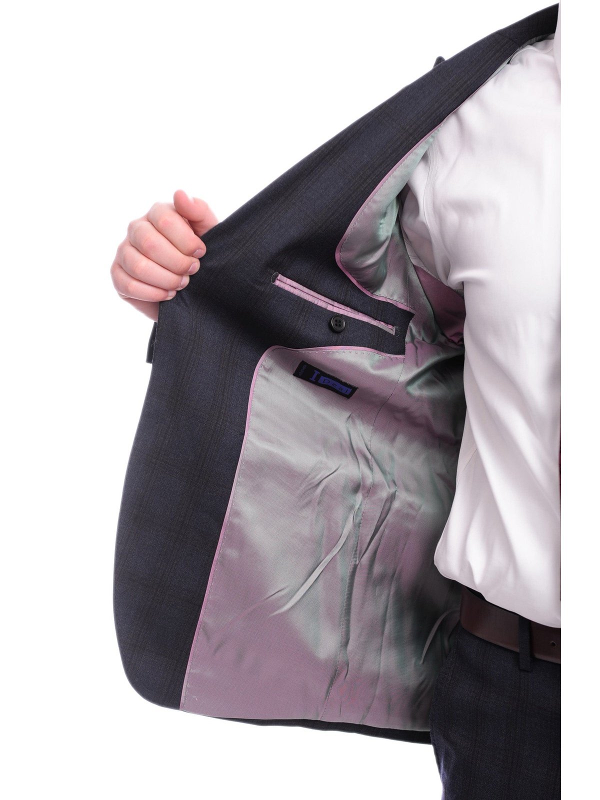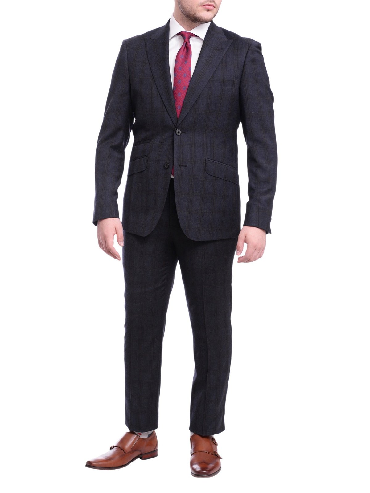 Ideal Slim Fit Blue And Red Plaid Two Button Wool Suit Peak Lapels