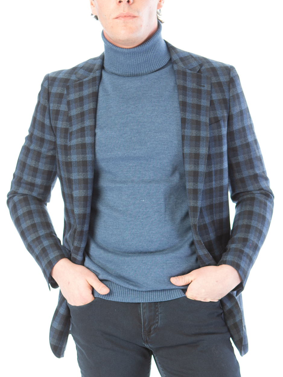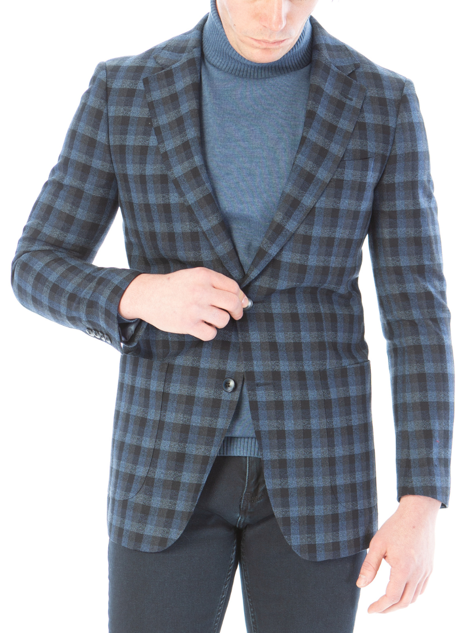 Sartoria Mazara Mens Classic Fit Black & Blue Check 100% Wool Blazer Sportcoat