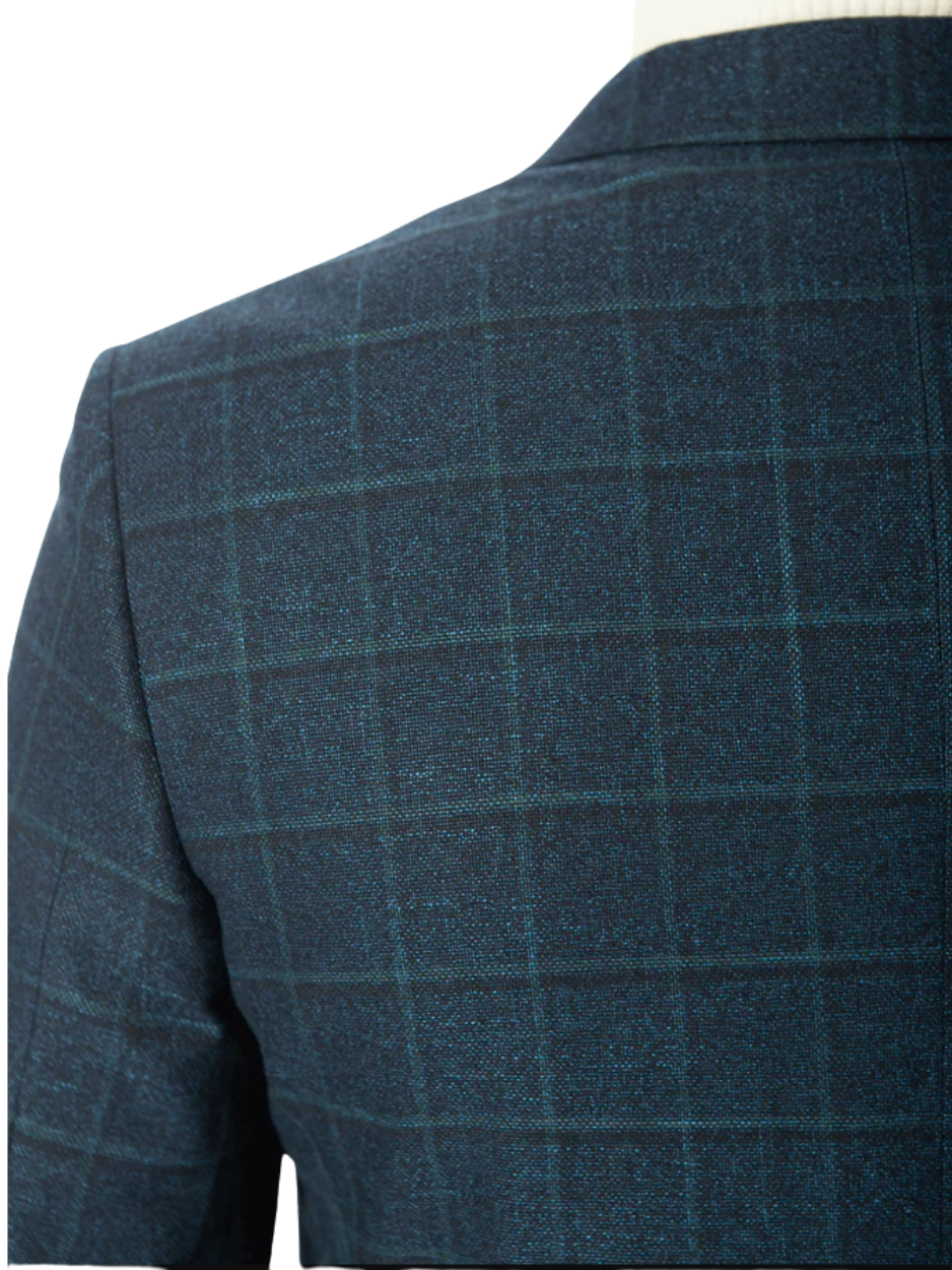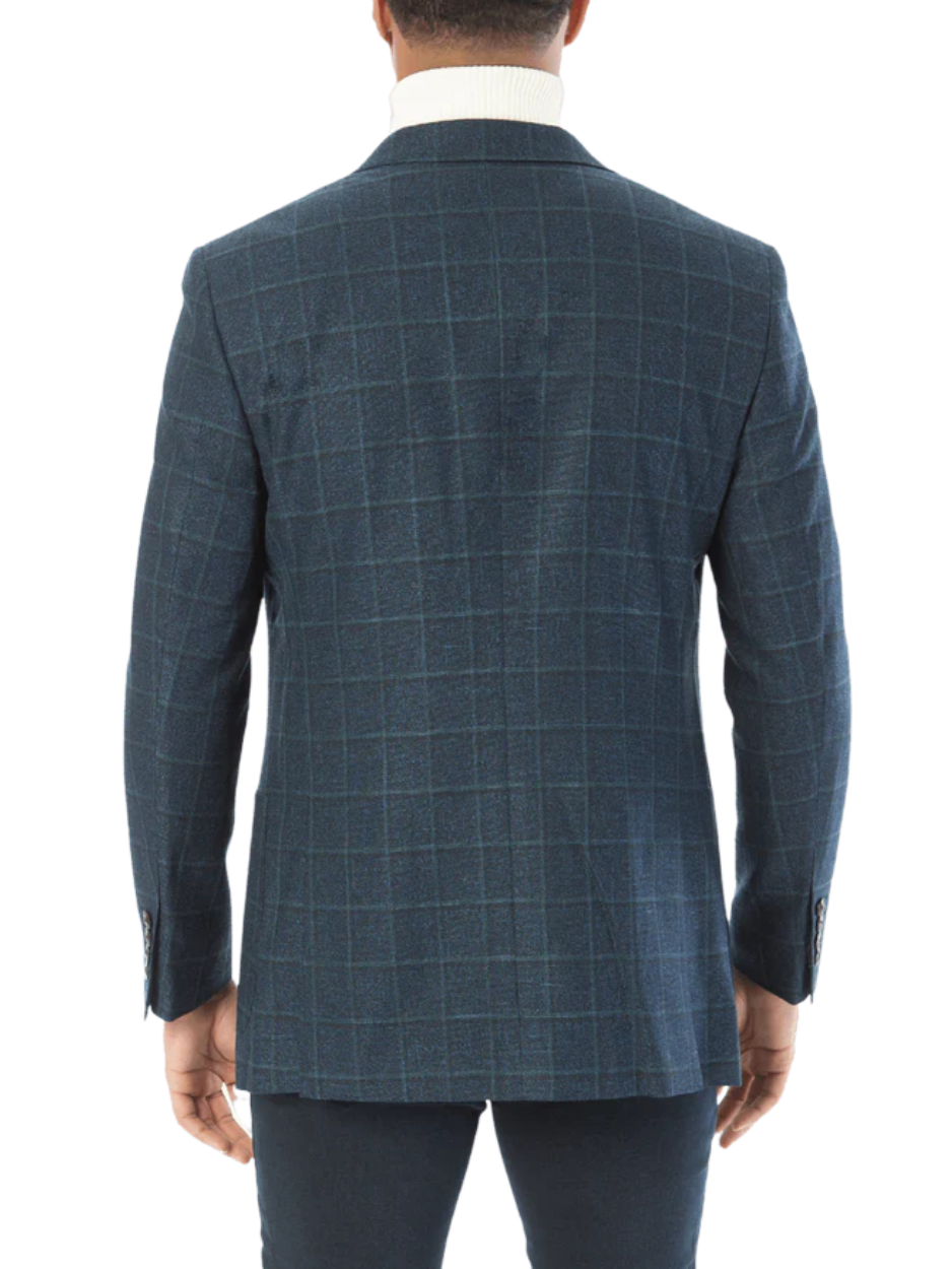 Sartoria Mazara Mens Classic Fit Blue With Green Check 2 Button Blazer Sportcoat