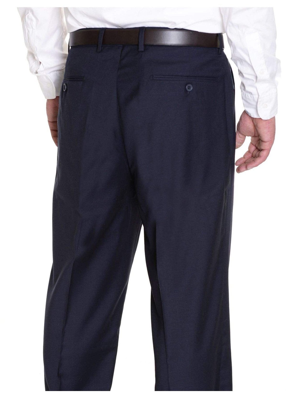 Mens Classic Fit Solid Navy Blue Pleated Wool Dress Pants