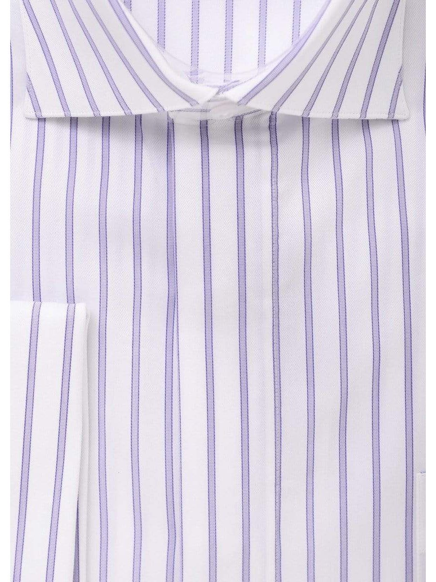 Mens Cotton Blend Purple Striped French Cuff Classic Fit Dress Shirt