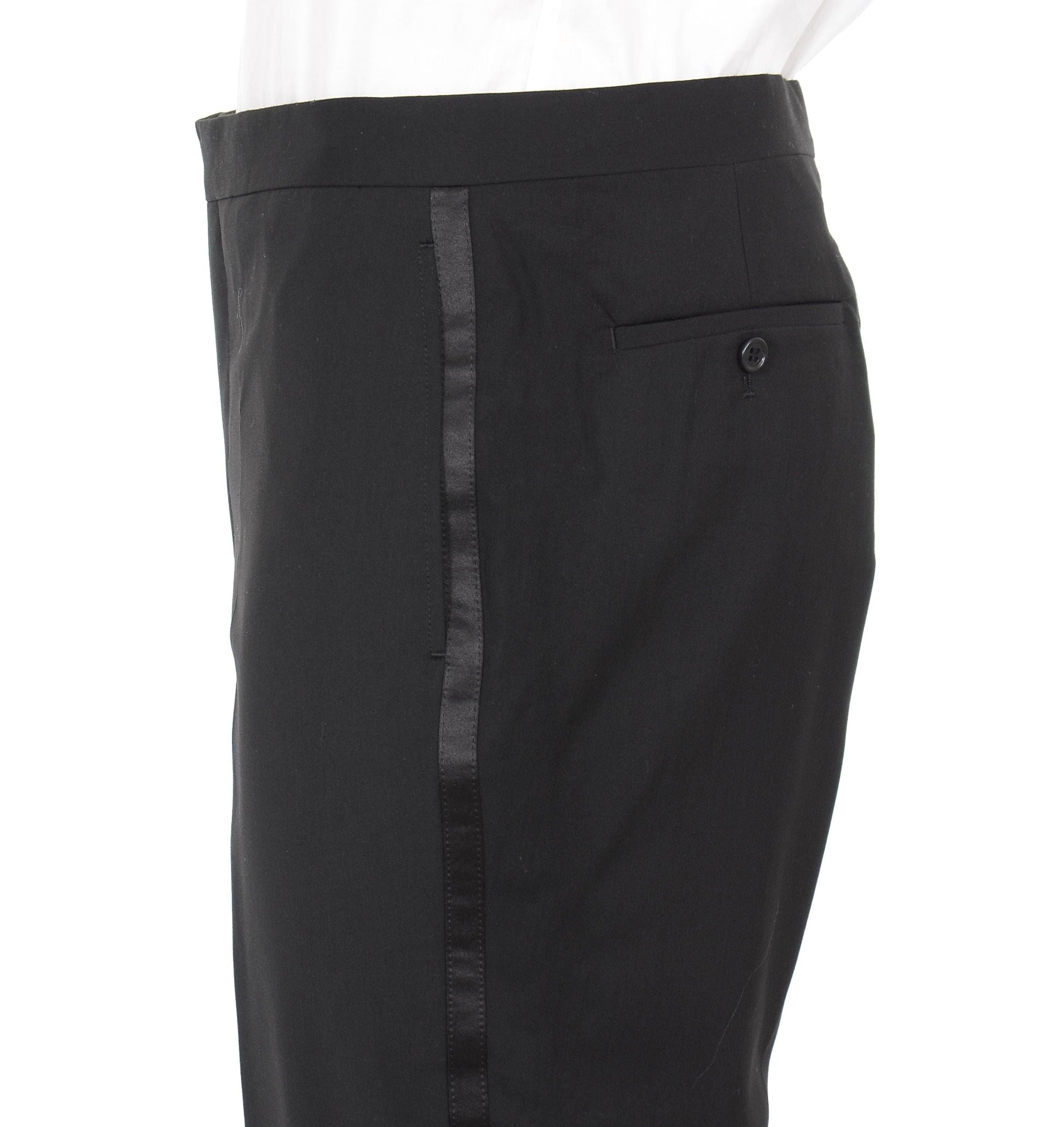 Here is proof that an affordable tux can be perfectly tailored. Wear this sophisticated tuxedo for formal social events. This tux is constructed from premium synthetic fibers. The tailoring is impeccable. The seams are extra durable. This tux is ideal for wedding parties, groomsmen, and prom.