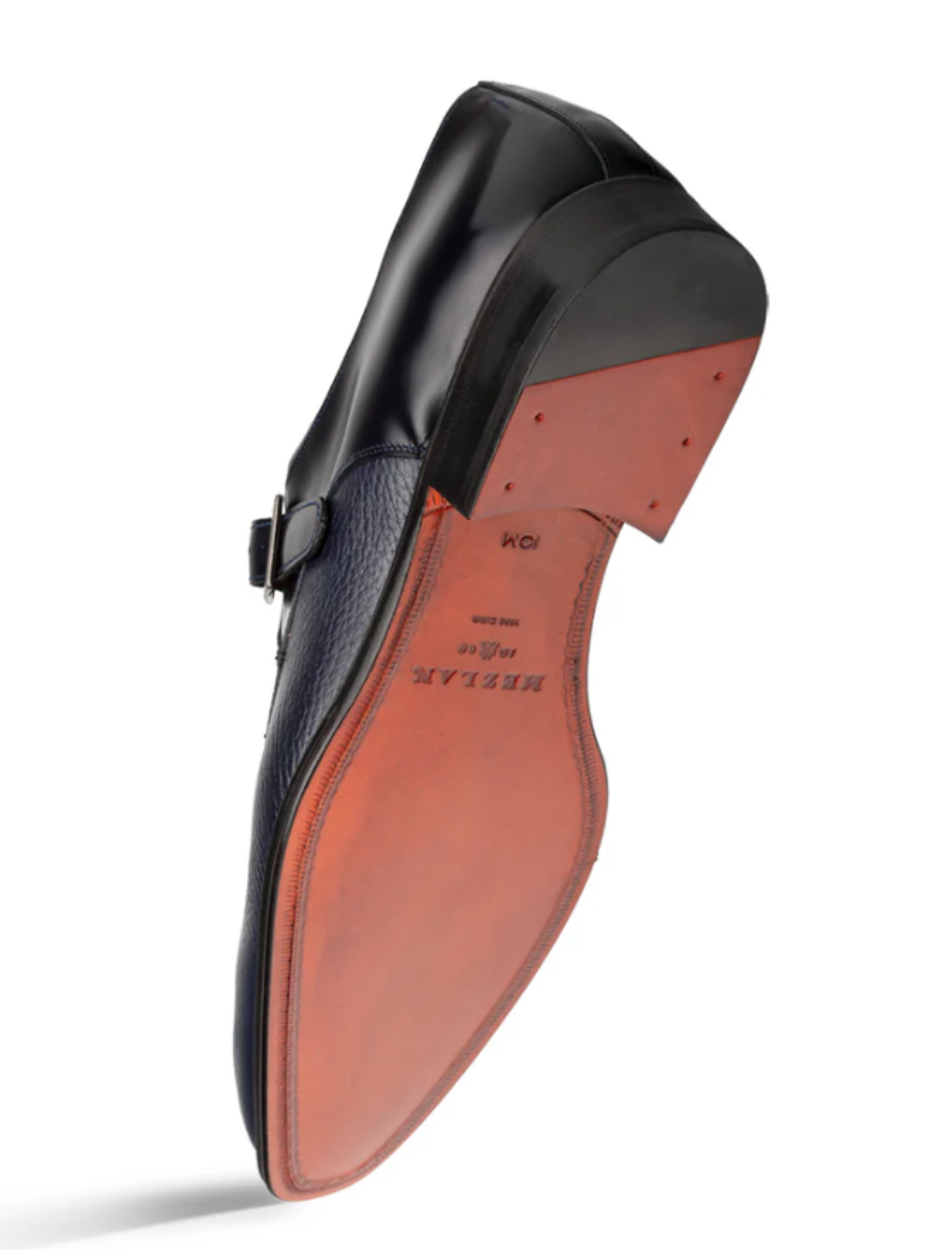 Mezlan Pego Navy Blue Deerskin & Calf Monk Strap Dress Shoes