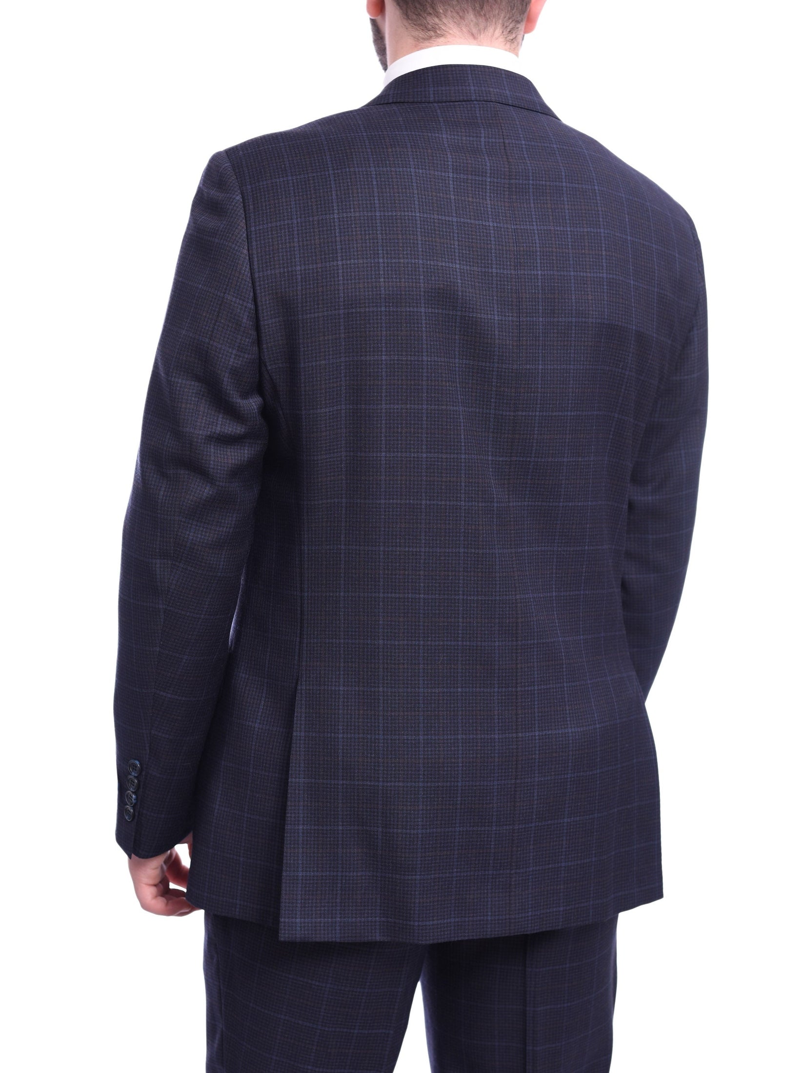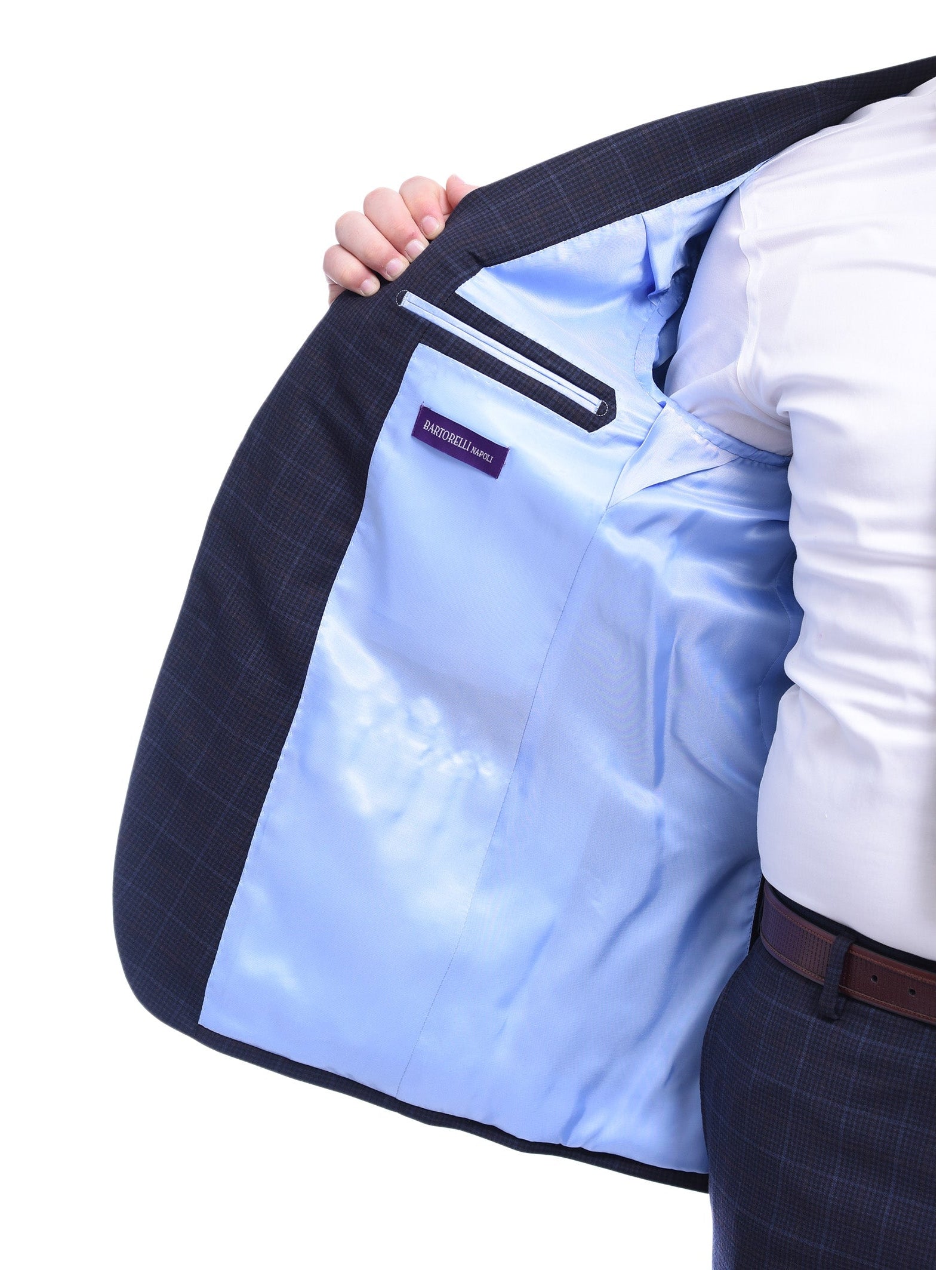 Napoli Classic Fit Blue Windowpane Plaid Half Canvassed Super 150s Wool Suit