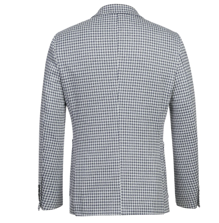Raphael Blue White Houndstooth Slim Fit Patch Pockets Notch Lapels Blazer