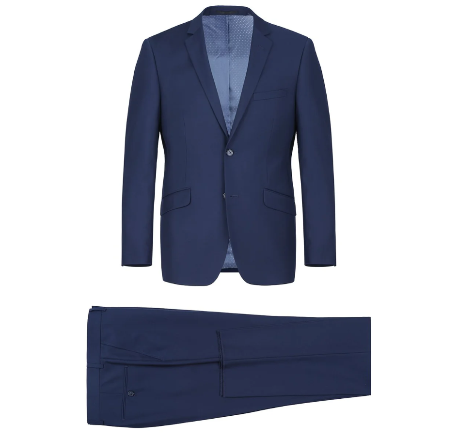 Raphael Men’s Solid Navy Blue Slim Fit Notch Lapel Two Button Suit