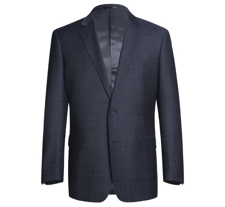 This classic fit navy suit is crafted from a smooth, subtly textured fabric that delivers a polished, versatile look. Designed with a notch lapel, two-button closure, and flap pockets, it offers a timeless silhouette that works for business, weddings, and formal events. The matching flat-front trousers ensure a cohesive, professional appearance while maintaining comfort throughout the day.
