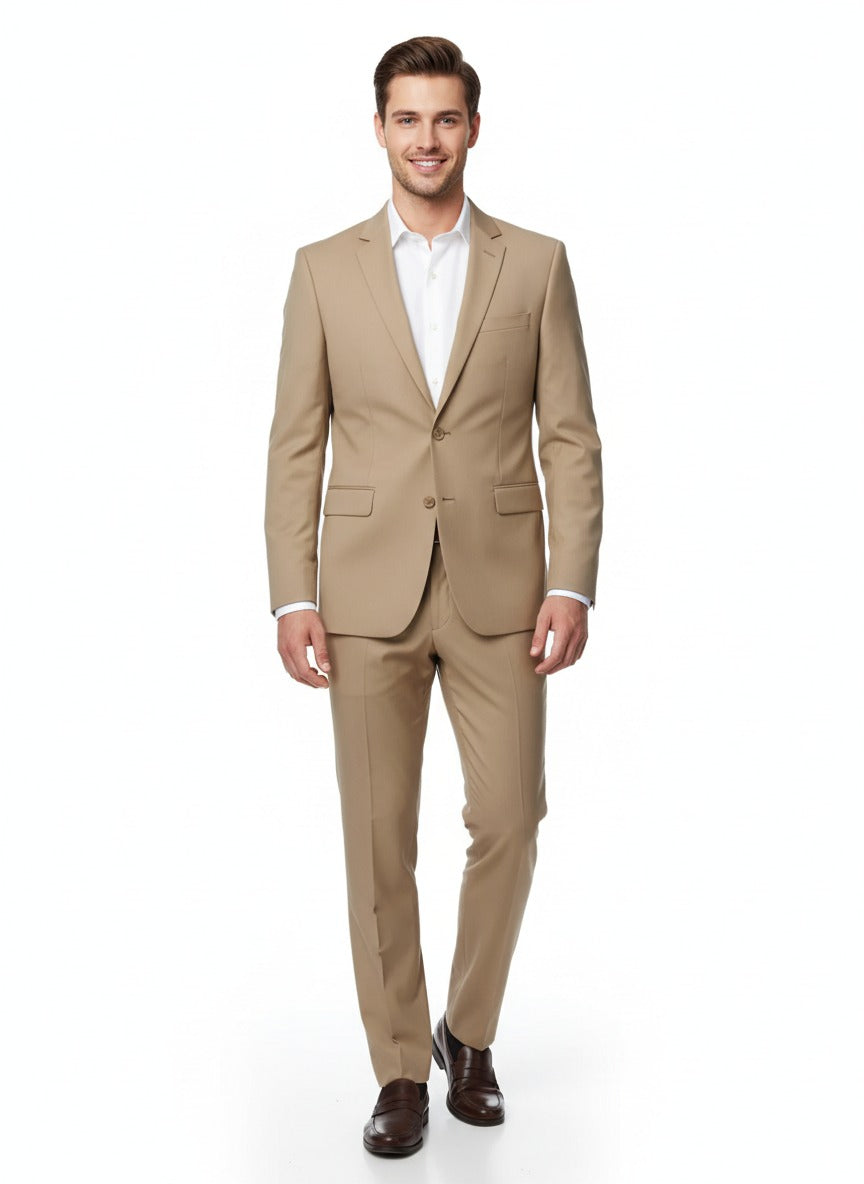 Raphael Solid Dark Tan Notch Lapel Classic Fit Two Button Suit