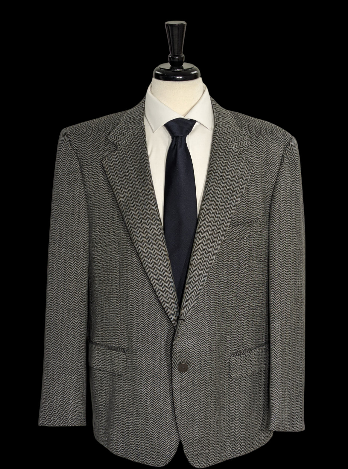 Sartoria Partenopea Men's Gray and Black Herringbone 100% Wool Sport Coat 46R