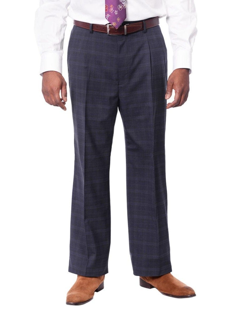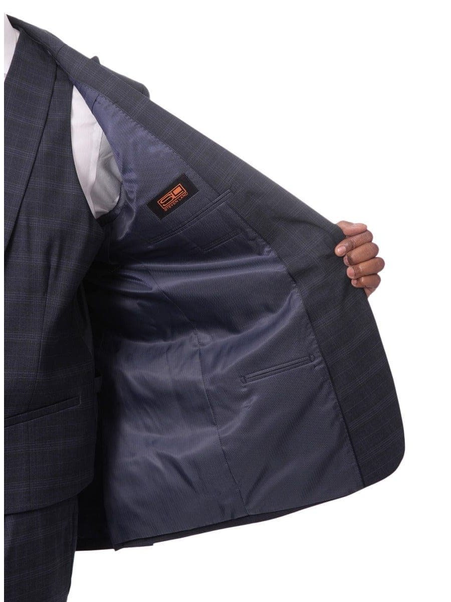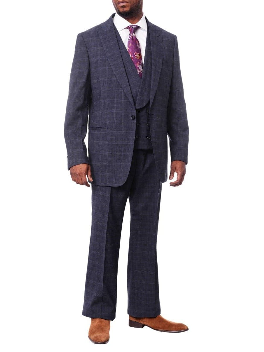 Steven Land Mens Blue Plaid 100% Wool Classic Fit 3 Piece Suit